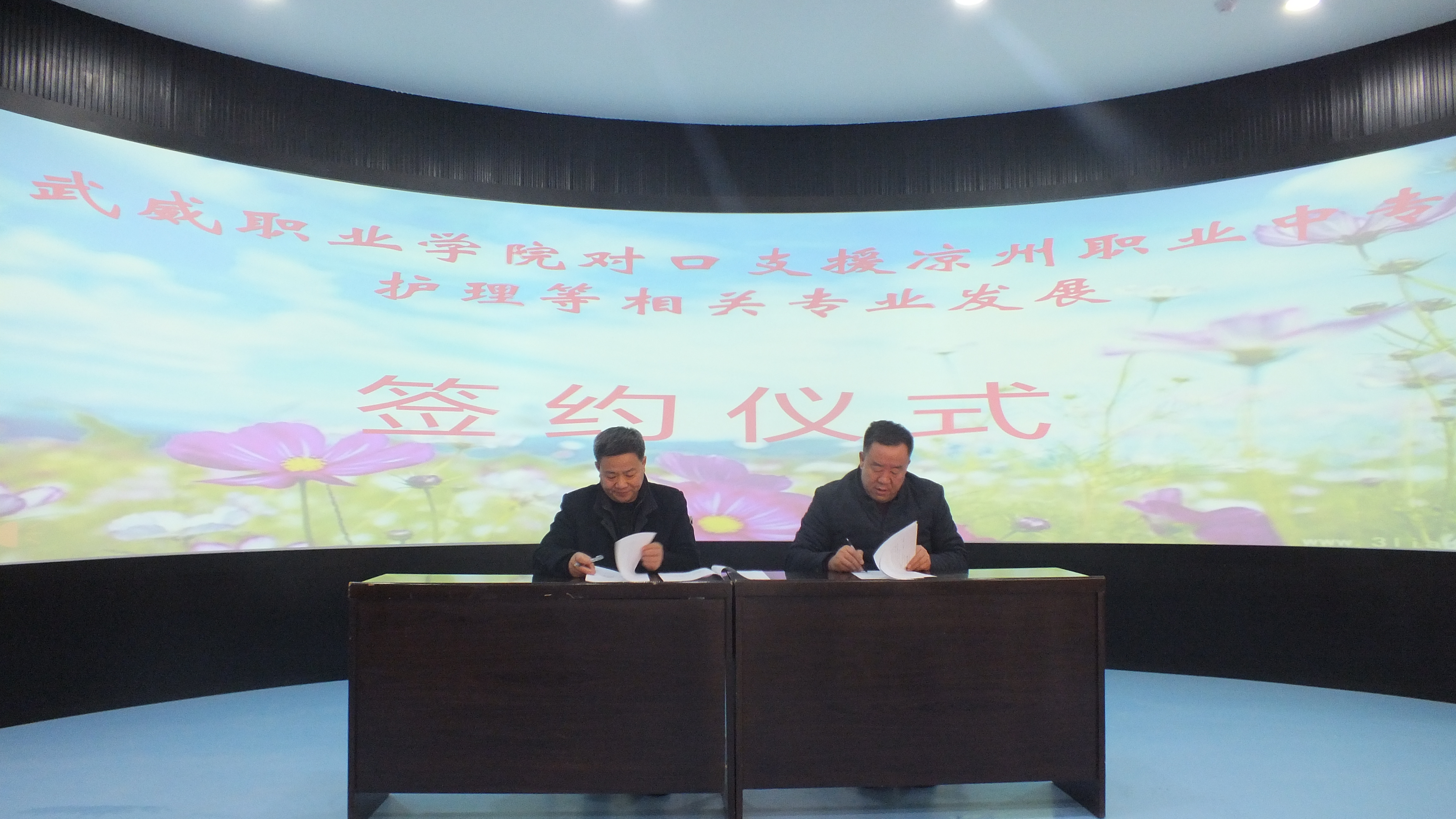 12月13日,學院與涼州區(qū)職業(yè)中專簽訂《武威職業(yè)學院對口支援涼州職業(yè)中專護理等相關(guān)專業(yè)發(fā)展協(xié)議》。學院黨委副書記趙明,涼州區(qū)職業(yè)中專校長何生玉,副校長張同禎、任鋒,學院護理系黨總支書記張建輝等參加了簽字儀式。