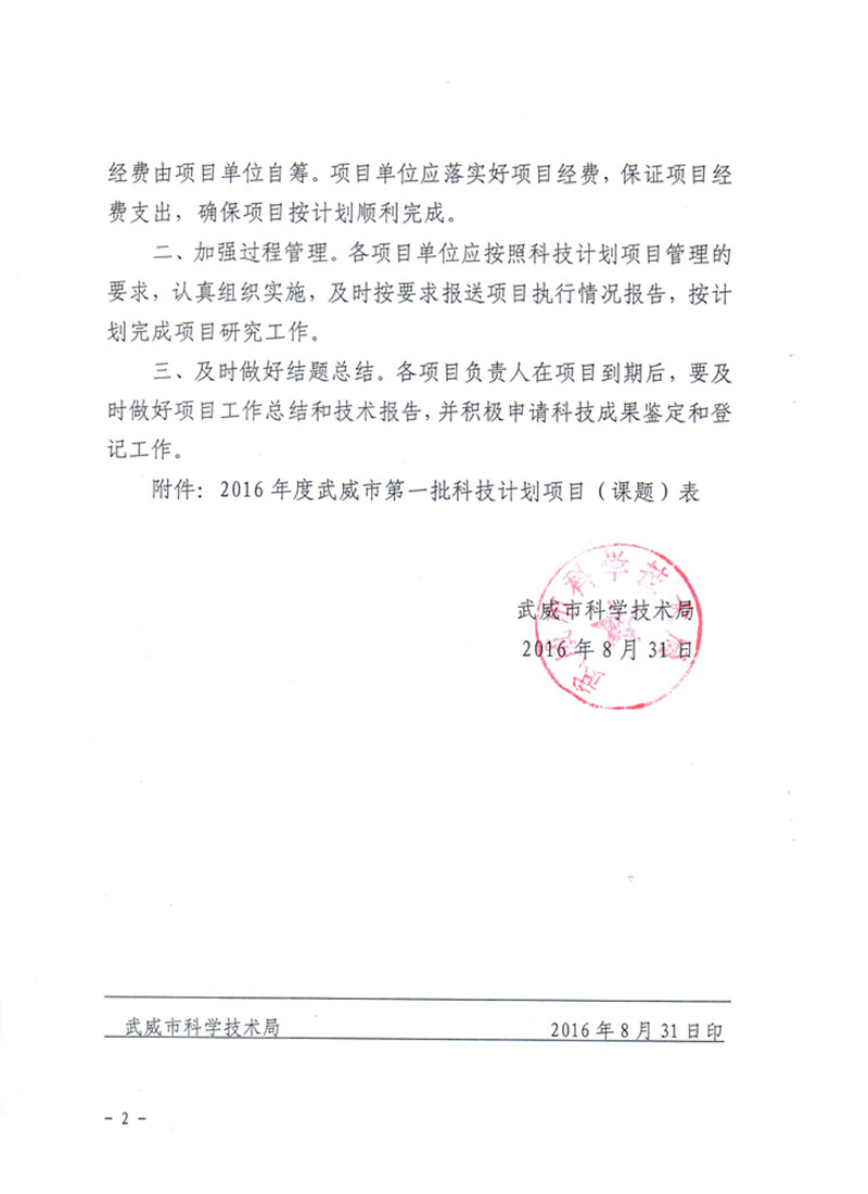 科研項(xiàng)目---2016年度武威市第一批科技計(jì)劃項(xiàng)目