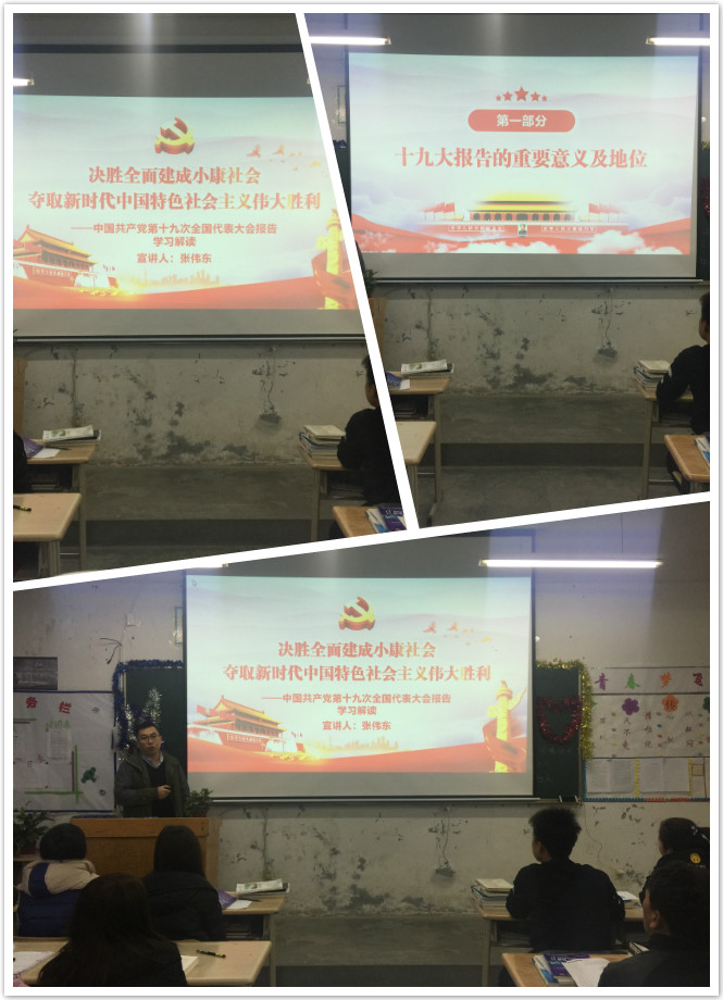 12月20日晚自習(xí)時(shí)間,在17級計(jì)算機(jī)網(wǎng)絡(luò)大專班教室,電信系黨員教師張偉東同志給學(xué)生們以《深入學(xué)習(xí)重點(diǎn)解讀十九屆大會議報(bào)告精神》為主題,對十九大報(bào)告進(jìn)行了全方位的宣講解讀。