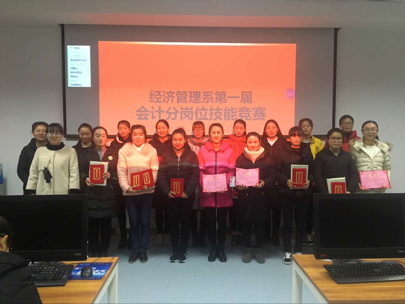 經(jīng)過三個小時的激烈角逐,16級會計大專1班獲得團(tuán)體一等獎,16級會計大專2班和4班獲得團(tuán)體二等獎;滿曉紅等4名同學(xué)獲得個人一等獎,苗文嘯等6名同學(xué)獲得個人二等獎,王靜等10名同學(xué)獲得個人三等獎。