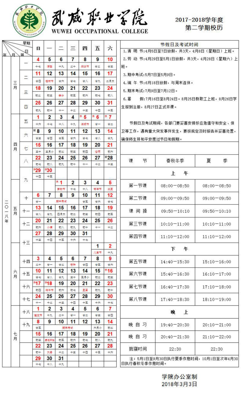 2017-2018學(xué)年度第二學(xué)期校歷