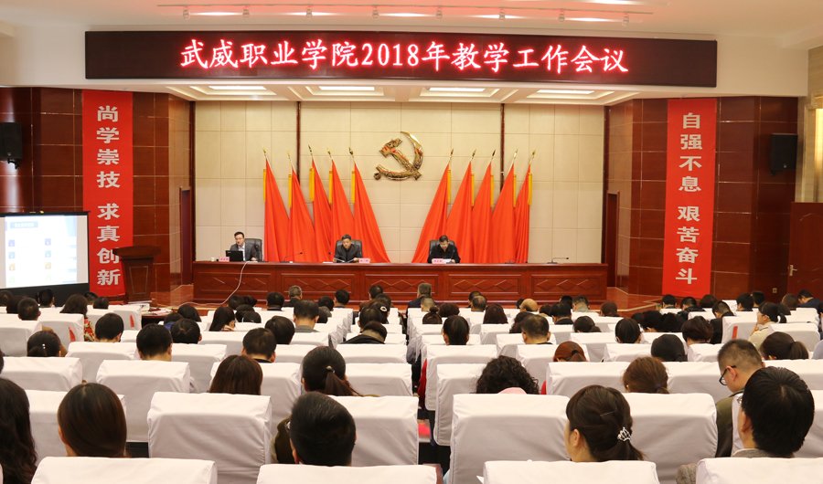 黨委副書記趙明對學(xué)院2017年教學(xué)工作做了簡要回顧與總結(jié),結(jié)合全國全省教育工作會議精神,深入分析了學(xué)院目前面臨的困難與存在的問題,從八個方面對2018年學(xué)院教學(xué)重點(diǎn)工作做了安排部署。一是加強(qiáng)思想政治建設(shè),貫徹落實(shí)中央決策部署。學(xué)習(xí)貫徹習(xí)近平新時代中國特色社會主義思想和黨的十九大精神,貫徹落實(shí)全國教育大會精神,細(xì)化落實(shí)職業(yè)教育具體工作措施。二是深化改革,增強(qiáng)辦學(xué)活力。堅持依法治校,繼續(xù)完善內(nèi)部治理體系,加強(qiáng)學(xué)術(shù)委員會、職稱評審委員會建設(shè),健全管理體系和運(yùn)行機(jī)制,大力推進(jìn)人才培養(yǎng)模式改革和招生考試制度改革。三是強(qiáng)化內(nèi)涵,全力推進(jìn)優(yōu)質(zhì)高職院校建設(shè)。抓實(shí)推進(jìn)優(yōu)質(zhì)高職院校6個模塊19個項目94項任務(wù)312條子任務(wù)的建設(shè)工作,加強(qiáng)內(nèi)部協(xié)調(diào),全力推進(jìn)。加強(qiáng)專業(yè)內(nèi)涵建設(shè)和實(shí)踐教學(xué)內(nèi)涵建設(shè),建立一批優(yōu)質(zhì)特色專業(yè)和一批高水平生產(chǎn)性實(shí)訓(xùn)基地;積極開展創(chuàng)新創(chuàng)業(yè)教育實(shí)踐活動,加大社會培訓(xùn)力度,積極探索開展國際合作與交流;加強(qiáng)智慧校園和校園文化建設(shè)。四是優(yōu)化結(jié)構(gòu),全力打造一批高水平優(yōu)質(zhì)特色專業(yè)。利用直屬附屬醫(yī)院、校辦企業(yè)武威泰豐新能源有限責(zé)任、甘肅(武威)國際陸港和武威保稅物流中心等優(yōu)勢,加快重點(diǎn)專業(yè)建設(shè)力度,打造3~5個國家級高水平優(yōu)質(zhì)特色專業(yè)。五是合作培養(yǎng),著力打造專兼結(jié)合的高水平教師隊伍。大力實(shí)施教師素質(zhì)提升工程,完善同濟(jì)大學(xué)編制的《武威職業(yè)學(xué)院師資能力提升培訓(xùn)方案》,落實(shí)西安交通大學(xué)、天津職業(yè)大學(xué)簽訂的合作協(xié)議,推進(jìn)教師教學(xué)發(fā)展中心建設(shè)與運(yùn)行,強(qiáng)化專業(yè)帶頭人、新進(jìn)教師、骨干教師、優(yōu)秀青年教師的培養(yǎng)力度。六是育人為本,關(guān)注學(xué)生成長成才。優(yōu)化育人環(huán)境,開足開好思想政治類、人文素養(yǎng)提升類課程,開展校內(nèi)職業(yè)技能競賽,鼓勵支持參加省級以上比賽,培養(yǎng)學(xué)生能力。七是深化產(chǎn)教融合,提升社會服務(wù)水平。充分發(fā)揮職業(yè)教育集團(tuán)作用,深化“職業(yè)教育+產(chǎn)業(yè)園區(qū)+生產(chǎn)基地”的校企合作模式;提升校辦企業(yè)、直屬附屬醫(yī)院的教學(xué)服務(wù)功能;各專業(yè)要拓展產(chǎn)教融合渠道,精準(zhǔn)施策,服務(wù)國家戰(zhàn)略。八是完善質(zhì)量保障機(jī)制,提升人才培養(yǎng)質(zhì)量。編制并逐步推行教學(xué)工作診斷與改進(jìn)方案,學(xué)習(xí)實(shí)施精細(xì)化管理模式,加大教學(xué)督查力度,規(guī)范教學(xué)秩序,提高教育教學(xué)管理水平。