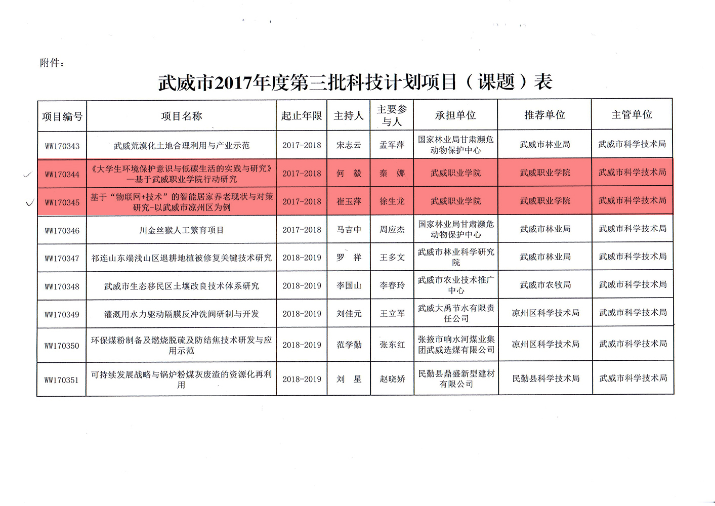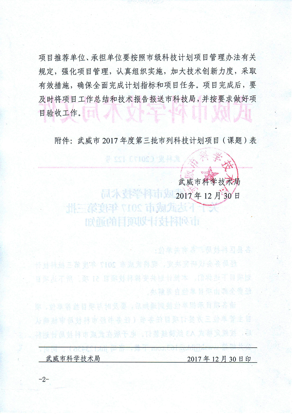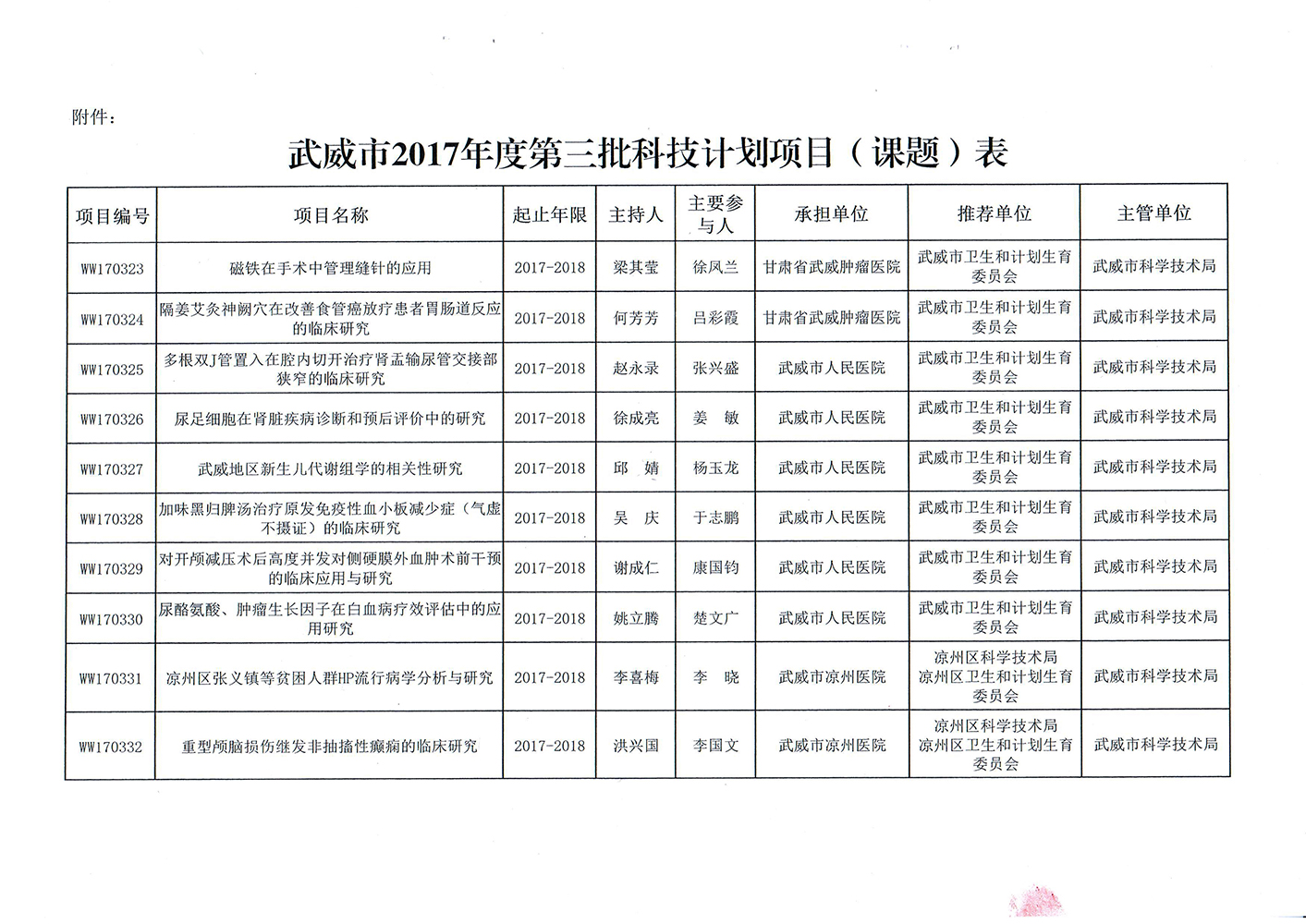 轉發(fā)武威市科學技術局關于下達武威市2017年度第三批市列科技計劃項目的通知