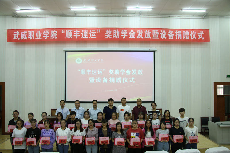 6月26日,武威職業(yè)學(xué)院“順豐速運(yùn)”獎助學(xué)金發(fā)放暨設(shè)備捐贈儀式在學(xué)院正德廳舉行。江蘇順豐速運(yùn)江蘇順豐通訊服務(wù)有限公司副總經(jīng)理張輝華先生,武威職業(yè)學(xué)院黨委委員、副院長王永緒同志、江蘇順豐通訊服務(wù)有限公司人力資源部經(jīng)理孫潞、項(xiàng)目經(jīng)理高國軍、招聘經(jīng)理明微、經(jīng)濟(jì)管理系書記潘從民、主任張伯成、物流專業(yè)教師代表和物流專業(yè)16、17級全體同學(xué)及相關(guān)專業(yè)學(xué)生代表近200人參加本次儀式。發(fā)放儀式由潘從民主持。