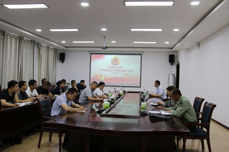 6月14日上午,由武威軍分區(qū)副司令員丁全綱帶隊(duì),市教育局督學(xué)張應(yīng)偉、涼州區(qū)人武部政委丁俊強(qiáng)、涼州區(qū)人武部副部長韓小偉、涼州區(qū)西關(guān)街武裝部部長趙光慶一行5人到我院督導(dǎo)檢查征兵工作,學(xué)院副院長田迎春、學(xué)工處處長王守云陪同檢查。各系黨總支書記、輔導(dǎo)員參加了匯報(bào)會(huì),田迎春主持會(huì)議。