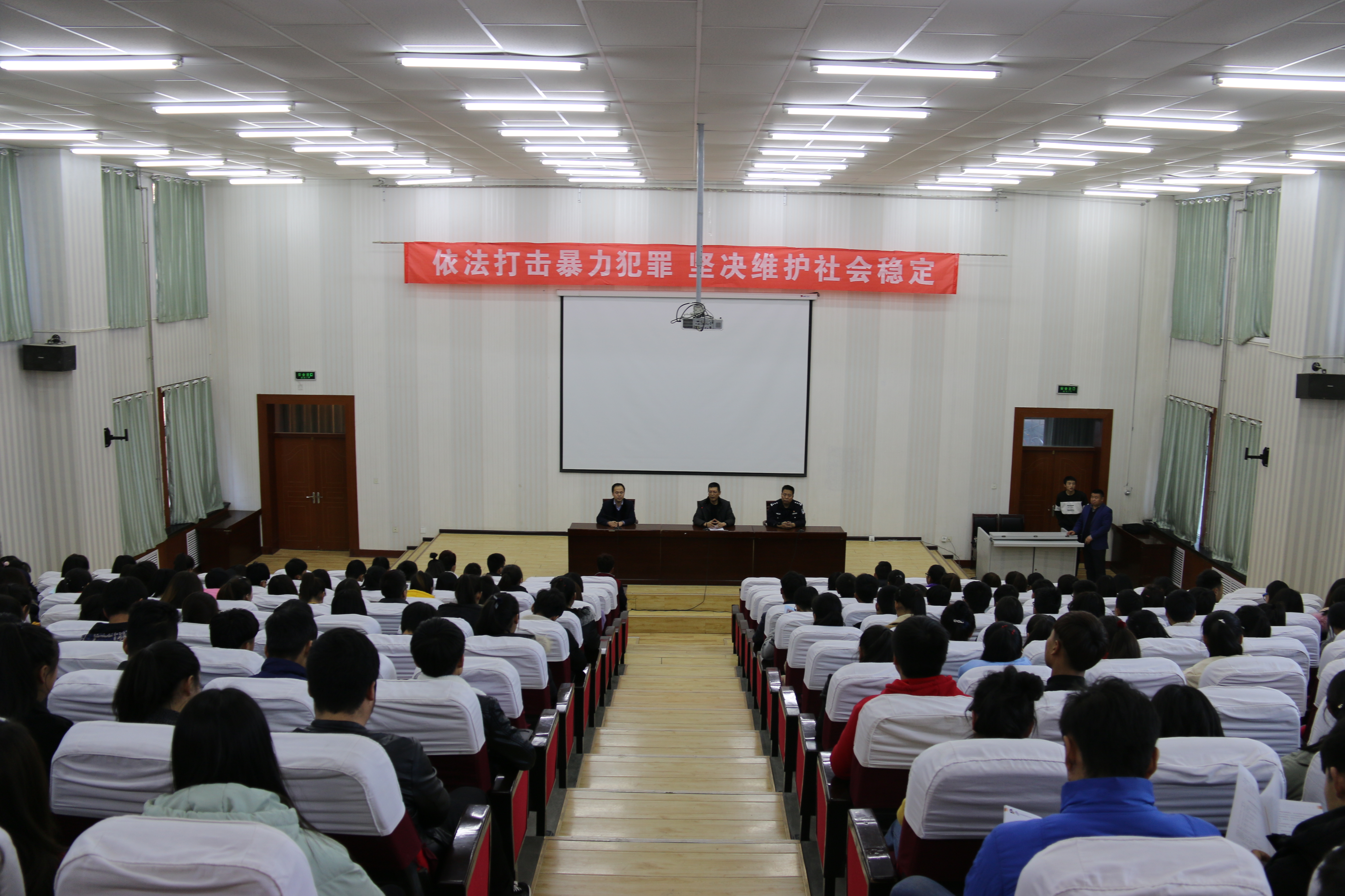 為不斷增強(qiáng)師生的安全防范意識,切實提高應(yīng)對突發(fā)事件的自我保護(hù)能力,12月27日下午,涼州區(qū)公安局反恐、特警支隊民警、西關(guān)街派出所民警走進(jìn)學(xué)院開展了反恐怖普法宣傳活動。學(xué)院副院長王永緒、武威市公安局反恐辦主任兼反恐支隊隊長吳龍出席活動并講話,西關(guān)街派出所、學(xué)院保衛(wèi)處負(fù)責(zé)同志及260多名師生參加活動。