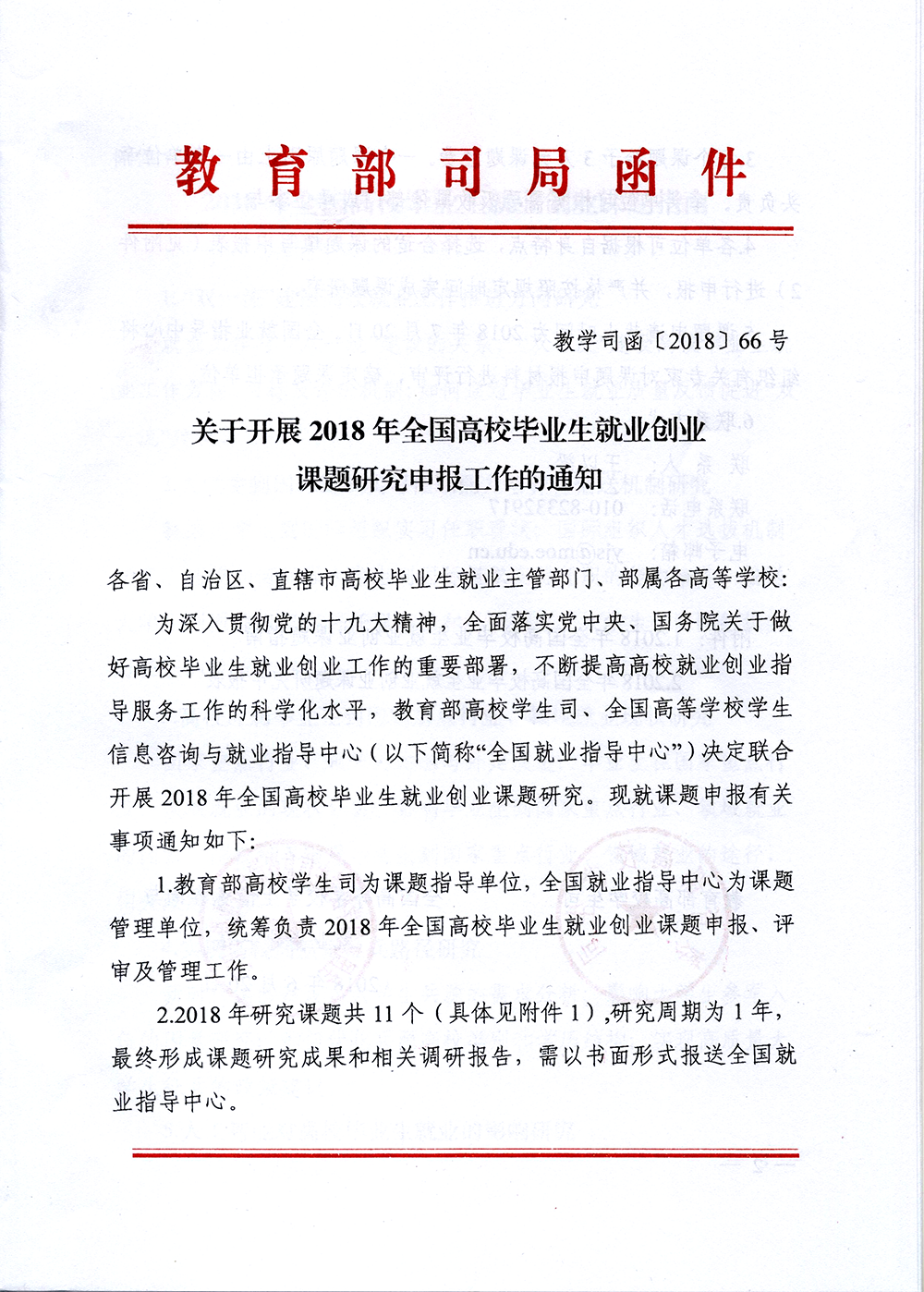 關(guān)于開展2018年全國高校畢業(yè)生就業(yè)創(chuàng)業(yè)課題研究申報(bào)工作的通知(附件1、附件2)