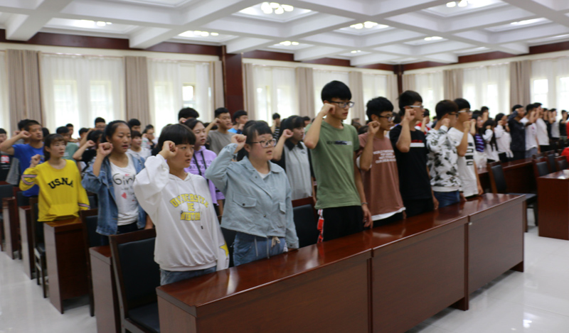 最后,2018級光伏材料班李飛虎同學作為新生代表發(fā)言。他滿懷憧憬,表達了同學們對大學生活的期待和勤奮求知的決心,并帶領全體新生進行了入學宣誓。
