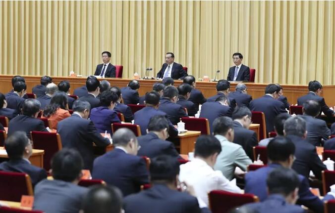 李克強在會上講話。汪洋、王滬寧、趙樂際、韓正出席會議。