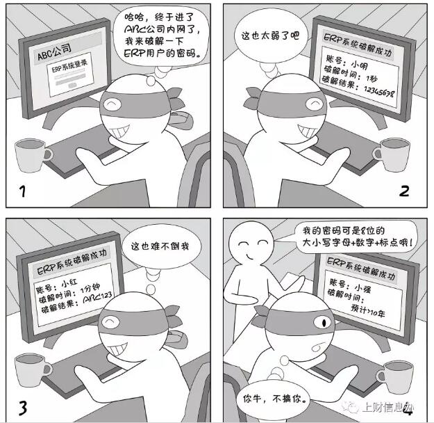 密碼越復(fù)雜,破解難度越高,而且這個比例是成指數(shù)級的,簡單6位數(shù)字密碼秒破,而8位復(fù)雜密碼的破解需要20年以上。