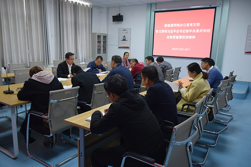 10月19日下午,新能源學(xué)院辦公室黨支部在黨員活動(dòng)室召開(kāi)學(xué)習(xí)貫徹習(xí)近平總書(shū)記給中央美術(shù)學(xué)院老教授重要回信精神專(zhuān)題會(huì)議。會(huì)議由黨支部書(shū)記任陶主持,支部全體黨員參加了此次會(huì)議。
