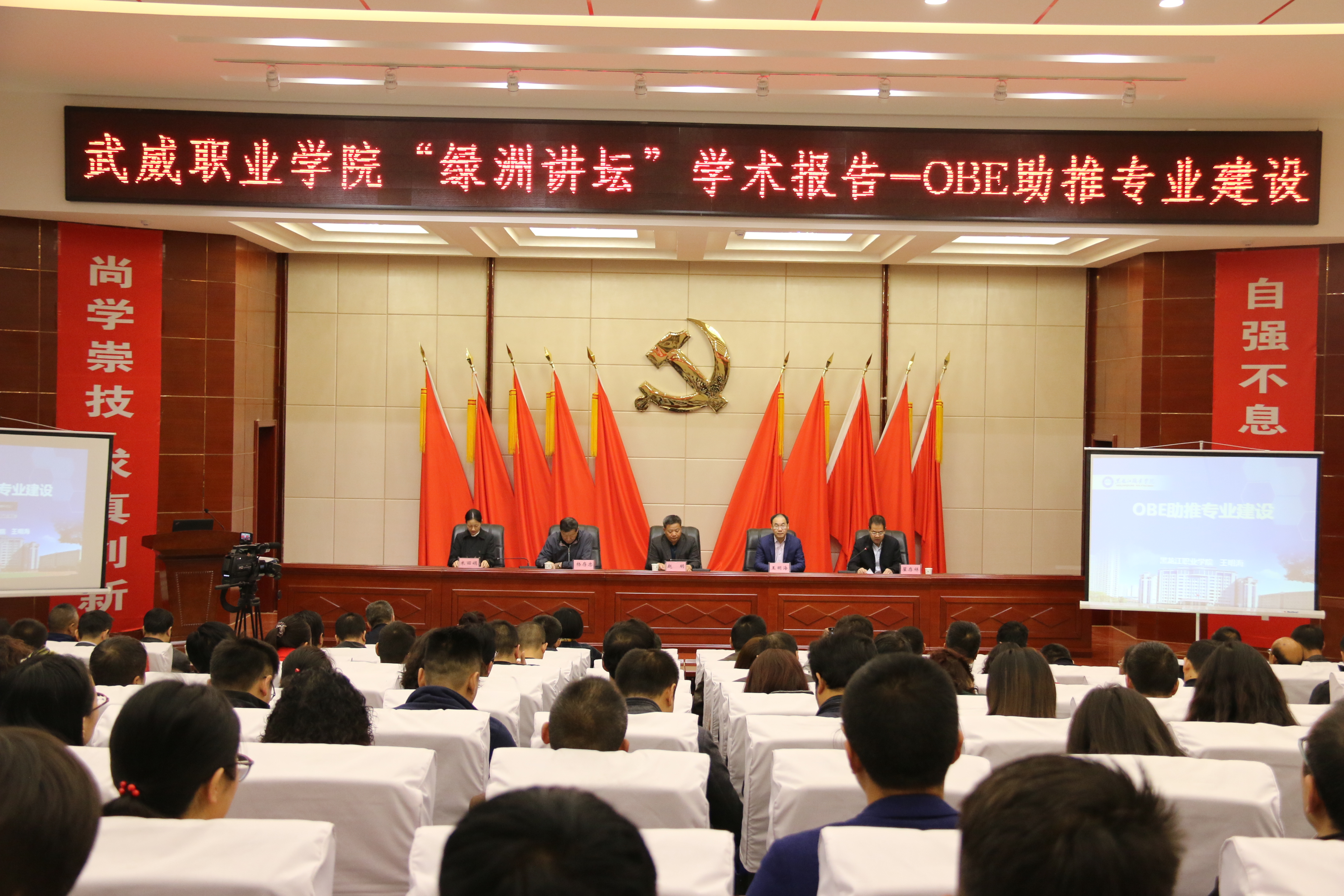 10月29日上午,“綠洲講壇”系列學(xué)術(shù)報(bào)告第二講在武威職業(yè)學(xué)院菁英廳舉行,報(bào)告會(huì)由中科低碳新能源技術(shù)學(xué)院承辦,黑龍江職業(yè)學(xué)院、黑龍江省經(jīng)濟(jì)管理干部學(xué)院副院長(zhǎng)王明海教授主講,學(xué)院黨委委員、副院長(zhǎng)翟存祥主持,中科低碳新能源技術(shù)學(xué)院院長(zhǎng)楊存忠教授,中科低碳新能源技術(shù)學(xué)院院長(zhǎng)助理米麗娟博士,武威職業(yè)學(xué)院黨委書(shū)記、院長(zhǎng)趙明教授和學(xué)院中層干部教研室主任、骨干教師代表以及甘肅畜牧工程職業(yè)技術(shù)學(xué)院領(lǐng)導(dǎo)和教學(xué)系主任應(yīng)邀參加了本次活動(dòng)。