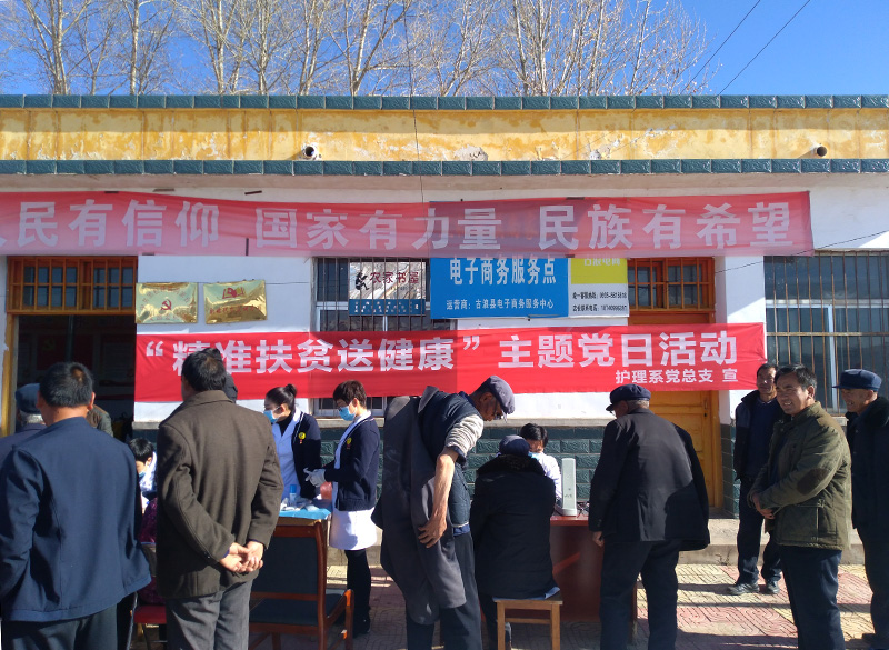 為深入學(xué)習(xí)宣傳貫徹黨的十九大精神及健康扶貧等惠民政策,減少出現(xiàn)“因病致貧”、“因病返貧”,11月23日,護(hù)理系黨總支組織黨員教師到我院精準(zhǔn)扶貧點(diǎn)古浪縣黑松驛鎮(zhèn)尚家臺村開展“健康扶貧,送醫(yī)送藥”主題黨日活動。