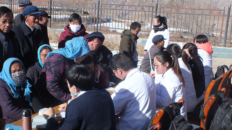 到達(dá)目的地后,黨員們不顧辛勞,分成兩組,一組由護(hù)理系黨總支書記張建輝帶領(lǐng)前往臥病在床的扶貧對象家里,親切詢問病情及家里近況,送上常備藥品。另一組在當(dāng)?shù)卮宀窟M(jìn)行義診活動,醫(yī)護(hù)人員仔細(xì)給村民們進(jìn)行體檢,耐心解答、細(xì)心診治;對前來問診的村民認(rèn)真進(jìn)行血壓、血糖、丙肝等項(xiàng)目的檢測、免費(fèi)發(fā)放藥品并對糖尿病、高血壓等慢性病的飲食、活動和用藥進(jìn)行指導(dǎo),普及衛(wèi)生常識和健康知識。醫(yī)護(hù)人員的精心服務(wù)讓村民們倍感欣慰,受到了他們的熱烈歡迎和一致稱贊。