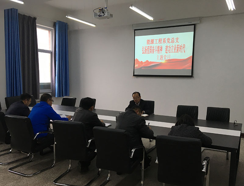 11月16日,能源工程系黨總支開展“弘揚(yáng)愛國(guó)奮斗精神 建功立業(yè)新時(shí)代”主題黨日活動(dòng),主題黨日由系黨總支書記黃文源主持,全系黨員教師參加了活動(dòng)。