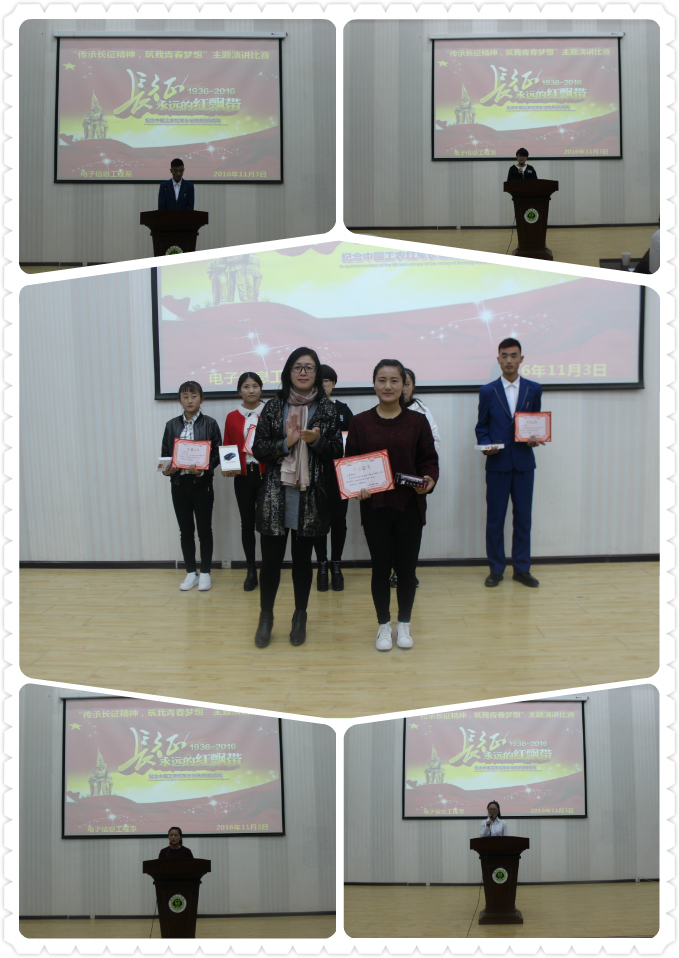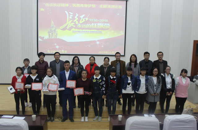 為貫徹習(xí)近平總書(shū)記在“紅軍長(zhǎng)征勝利80周年大會(huì)”上發(fā)表“不忘初心、繼續(xù)前進(jìn),走好新的長(zhǎng)征路”的重要講話,激發(fā)師生弘揚(yáng)偉大的長(zhǎng)征精神,電子信息工程系于11月3日在正德廳舉辦了 “傳承長(zhǎng)征精神,筑我青春夢(mèng)想”主題演講比賽。系主任李亞梅及各位班主任擔(dān)任本次比賽評(píng)委,2016級(jí)全體學(xué)生觀看了比賽。