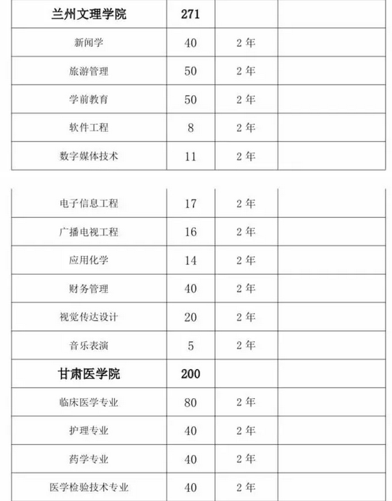 甘肅省2019年普通高校“專升本”招生計(jì)劃匯總表