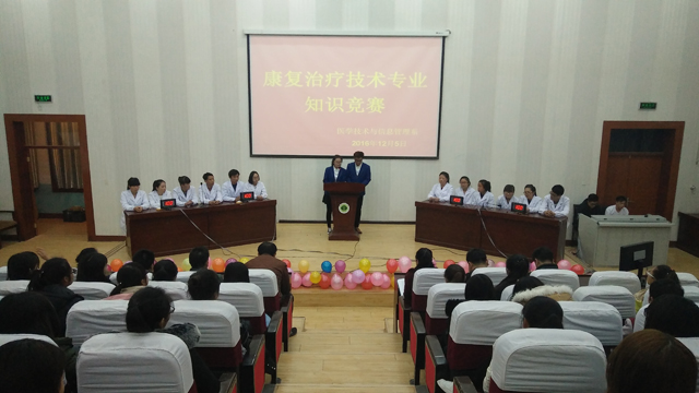 為加強(qiáng)學(xué)風(fēng)建設(shè),鞏固特色專(zhuān)業(yè)建設(shè)成果,增強(qiáng)同學(xué)們對(duì)專(zhuān)業(yè)知識(shí)的了解,培養(yǎng)同學(xué)們的思維能力、創(chuàng)新能力,提高學(xué)生的競(jìng)爭(zhēng)力,12月5日晚,醫(yī)學(xué)技術(shù)與信息管理系在尚德樓正德廳舉行康復(fù)治療技術(shù)專(zhuān)業(yè)知識(shí)競(jìng)賽。學(xué)院基建處處長(zhǎng)周興全,系主任楊如松,學(xué)生工作負(fù)責(zé)人魏曙光,院團(tuán)委馬琪老師,系政治輔導(dǎo)員,康復(fù)治療技術(shù)專(zhuān)業(yè)教研室主任、任課教師及全體班主任、學(xué)生代表參加本次活動(dòng)。