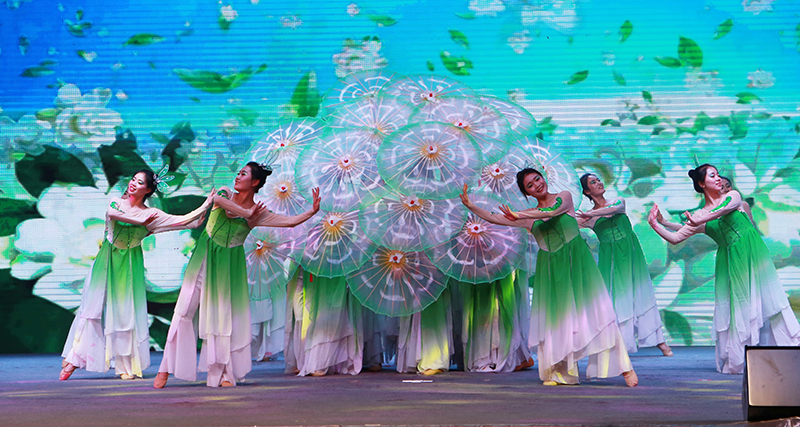 學(xué)院大學(xué)生藝術(shù)團(tuán)推送的節(jié)目詩朗誦《向祖國報(bào)告》和舞蹈《茉莉花開》參加了文藝匯演?!断蜃鎳鴪?bào)告》表現(xiàn)了我院青年昂揚(yáng)向上的風(fēng)采,表達(dá)了新時代青年不忘初心,繼往開來,為實(shí)現(xiàn)中國夢而奮斗的青春理想和堅(jiān)定信念。魯芬霞老師指導(dǎo)的《茉莉花開》,姑娘們靈動的身姿傾情獻(xiàn)舞,整個畫面美輪美奐,展現(xiàn)了中國舞蹈的獨(dú)特魅力,得到了觀眾的一直好評。
