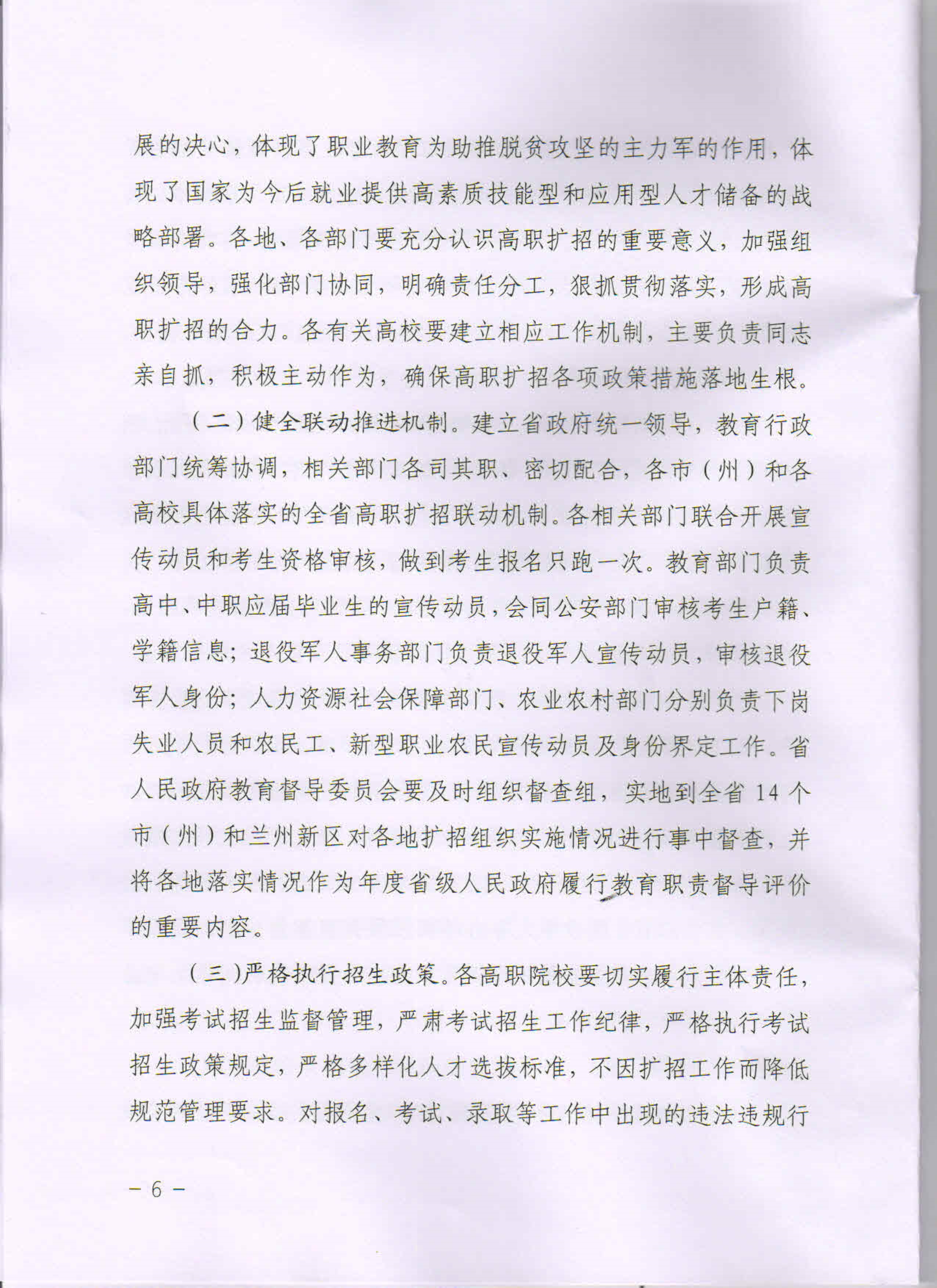甘肅省高等職業(yè)教育擴招專項工作實施方案