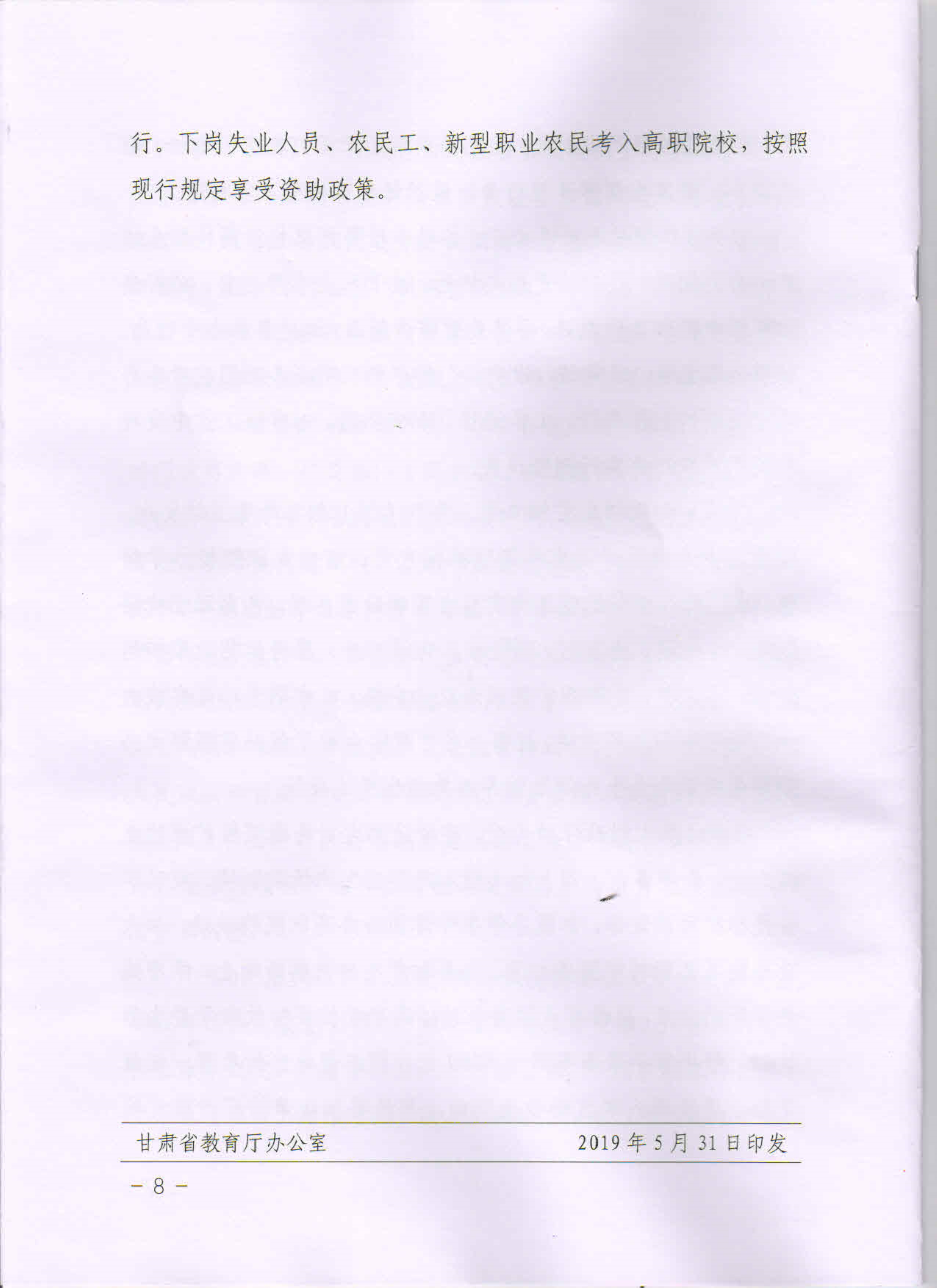 19年關(guān)于做好2019年甘肅省高等職業(yè)教育擴招專項考試招生工作的通知