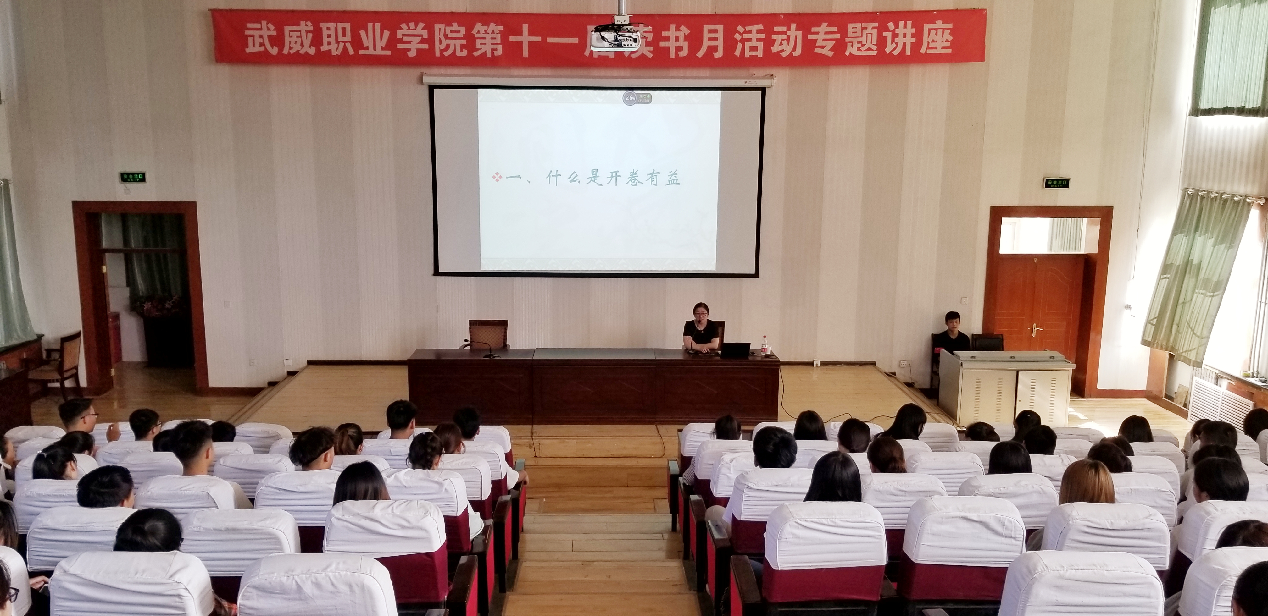武威職業(yè)學院第十一屆讀書月活動專題講座6月12日在正德廳舉行。學院中文專業(yè)副教授、電子信息工程系主任李亞梅應邀進行了《開卷有益》讀書月談讀書的專題講座,近300名師生參加了此次講座。