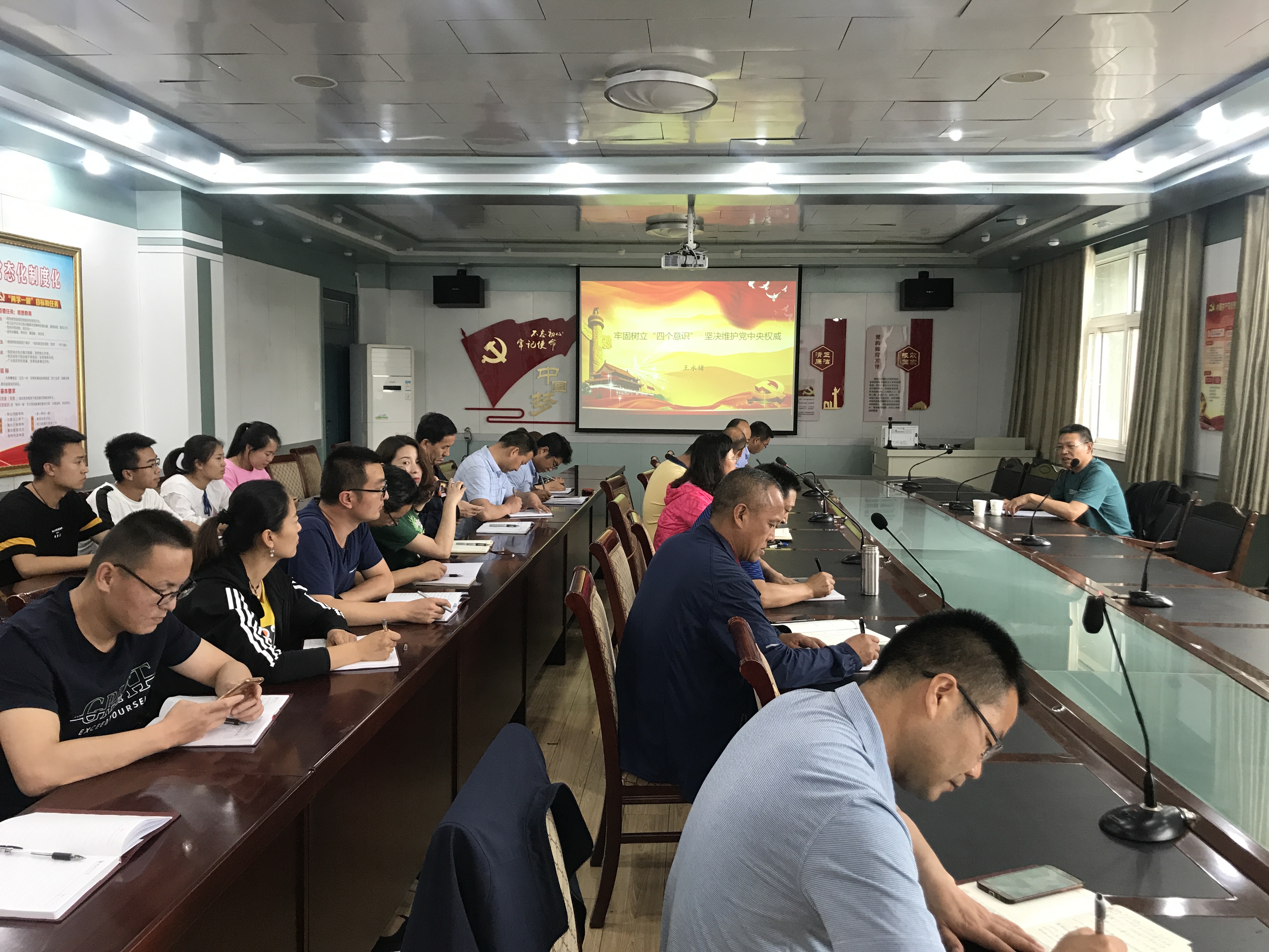 6月21日,學(xué)院黨委委員、副院長(zhǎng)王永緒在博學(xué)樓二樓黨員活動(dòng)室作了題為《牢固樹(shù)立“四個(gè)意識(shí)”·堅(jiān)決維護(hù)黨中央權(quán)威》的黨課,建筑工程系、經(jīng)濟(jì)管理系、電子信息工程系全體黨員和入黨積極分子50余人聆聽(tīng)了講座。