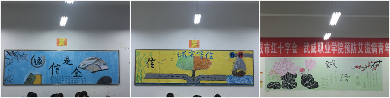 本次“誠(chéng)實(shí)守信”主題教育活動(dòng)包含誠(chéng)實(shí)守信主題班會(huì)、誠(chéng)實(shí)守信主題黑板報(bào)比賽、“誠(chéng)實(shí)守信我想說(shuō)”微演講、誠(chéng)實(shí)守信主題簽名活動(dòng)四項(xiàng)內(nèi)容。四項(xiàng)活動(dòng)緊密聯(lián)系,主題鮮明、宣傳了國(guó)家及學(xué)院資助政策,讓誠(chéng)實(shí)守信意識(shí)深入到每一位學(xué)生心中,激勵(lì)同學(xué)們做一個(gè)具有正確三觀(guān)、德智體美勞全面發(fā)展的社會(huì)主義建設(shè)者和接班人。