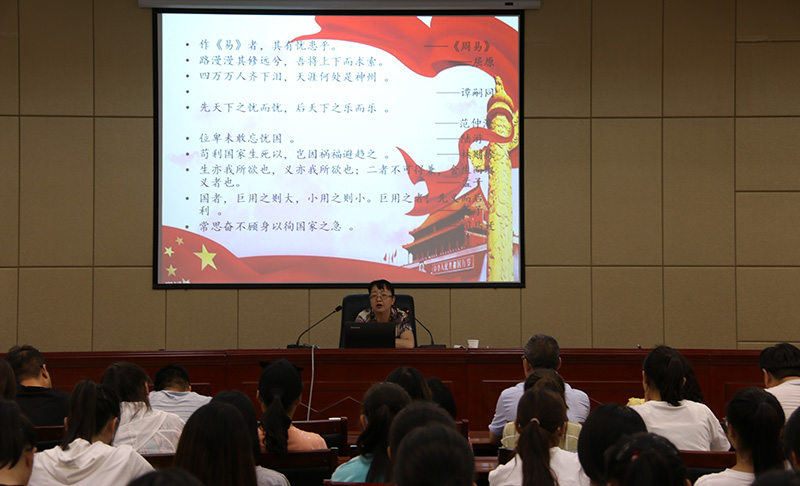 田迎春分別從溯源、求理、踐行三個方面深刻講解了愛國主義精神的傳承與弘揚。一是探尋中華民族愛國主義精神的基因,歷史深刻表明,愛國主義自古以來就流淌在中華民族血脈之中,去不掉,打不破,滅不了;二是洞悉當(dāng)代中國愛國主義的思想真諦,指出對新時代中國青年來說,熱愛祖國是立身之本、成才之基。三是讓愛國主義精神代代相傳、發(fā)揚光大,要求新時代師生要聽黨話、跟黨走,胸懷憂國憂民之心、愛國愛民之情,懂得奉獻(xiàn)祖國、奉獻(xiàn)人民,以一生的真情投入、一輩子的頑強(qiáng)奮斗來體現(xiàn)愛國主義情懷,讓愛國主義的偉大旗幟始終在心中高高飄揚!
