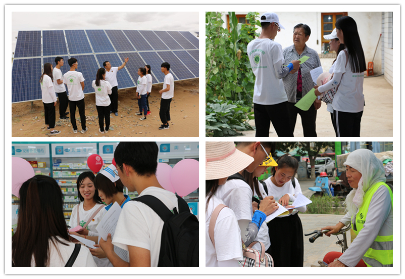 7月17-18日,實(shí)踐團(tuán)前往武威泰豐新能源扶貧電站,了解"光伏+農(nóng)業(yè)"工程實(shí)施、電站運(yùn)維管理情況,了解實(shí)施光伏扶貧項(xiàng)目在脫貧攻堅(jiān)、造福廣大貧困群眾中帶來(lái)的良好經(jīng)濟(jì)效益、生態(tài)效益和社會(huì)效益。參觀結(jié)束后團(tuán)隊(duì)成員深入武威市各社區(qū)、周邊鄉(xiāng)鎮(zhèn)發(fā)放宣傳資料、折頁(yè),開(kāi)展低碳環(huán)??破招麄骰顒?dòng)。通過(guò)現(xiàn)場(chǎng)答題的形式與市民互動(dòng),普及更多日常綠色環(huán)保生活知識(shí),引導(dǎo)社會(huì)公眾綠色低碳消費(fèi),為建設(shè)低碳環(huán)保社區(qū)打下良好的基礎(chǔ)。