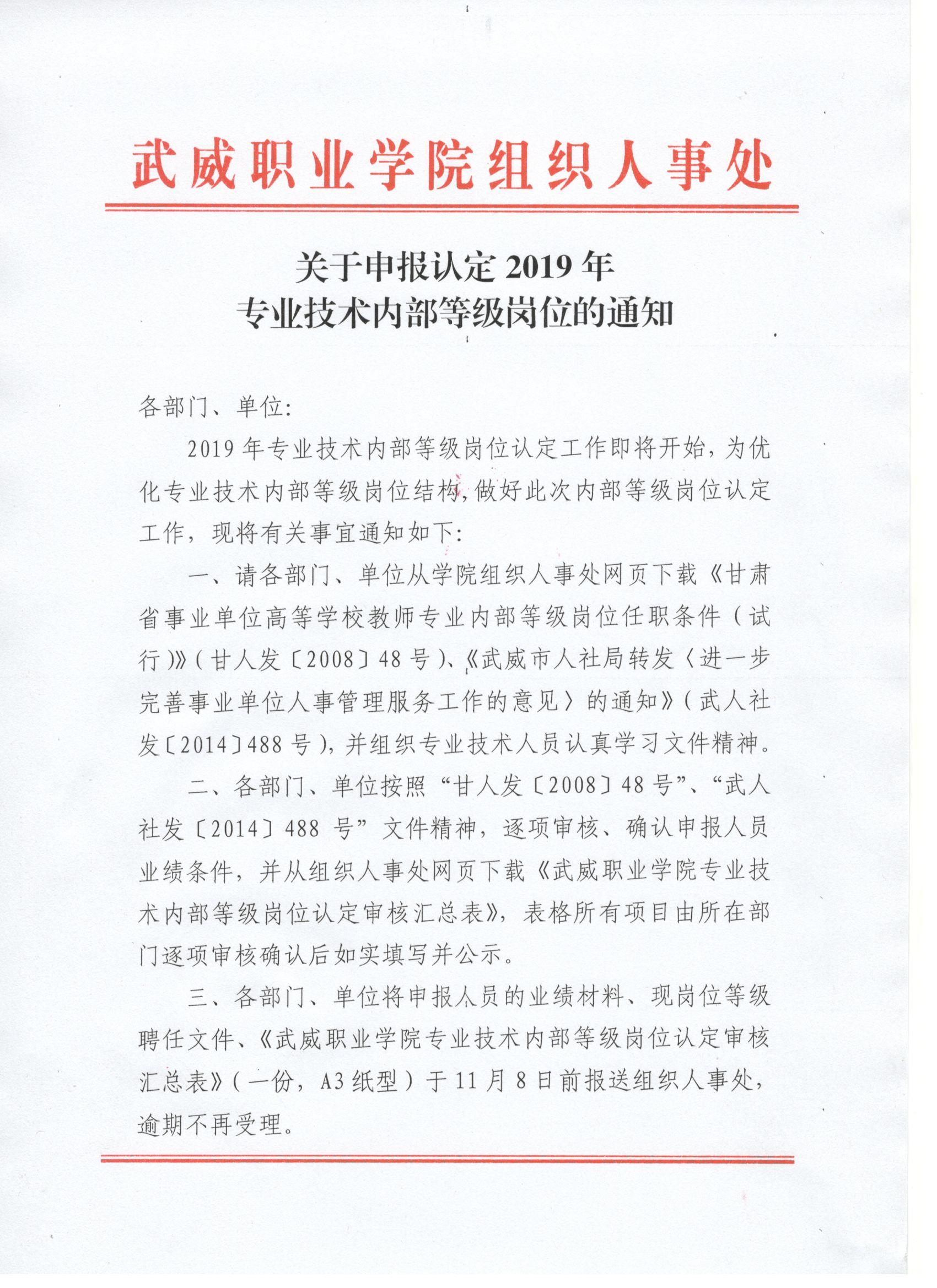 關(guān)于申報認(rèn)定2019年專業(yè)技術(shù)內(nèi)部等級崗位的通知