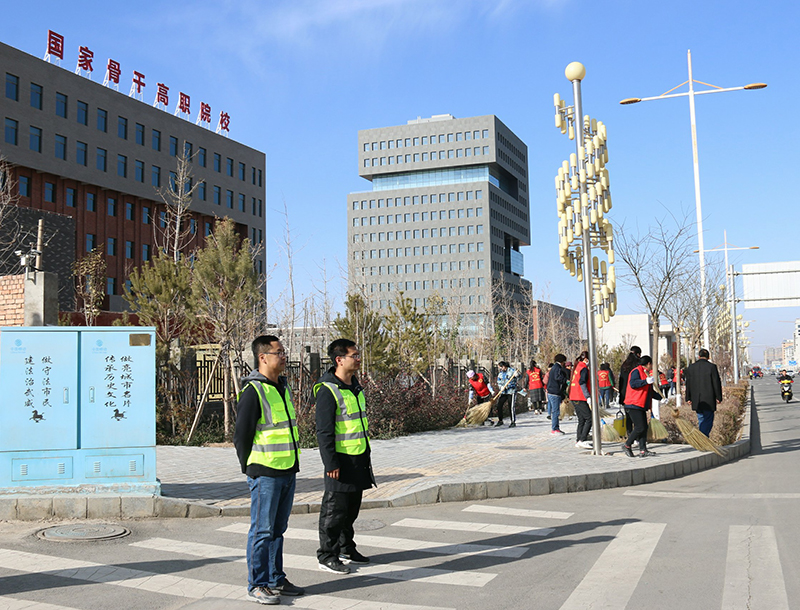 為認真落實全市創(chuàng)城工作推進會會議精神,提升全國文明城市創(chuàng)建工作水平,建設(shè)人民滿意的幸福城市,在市委市政府及創(chuàng)城辦的統(tǒng)一安排下,11月15日下午,在學(xué)院副院長王守云、張開禮的帶領(lǐng)下,我院100多名黨員干部組成的志愿者服務(wù)隊,集中在我院的劃定區(qū)域,進行常態(tài)化的文明交通勸導(dǎo)和環(huán)境衛(wèi)生整治活動。