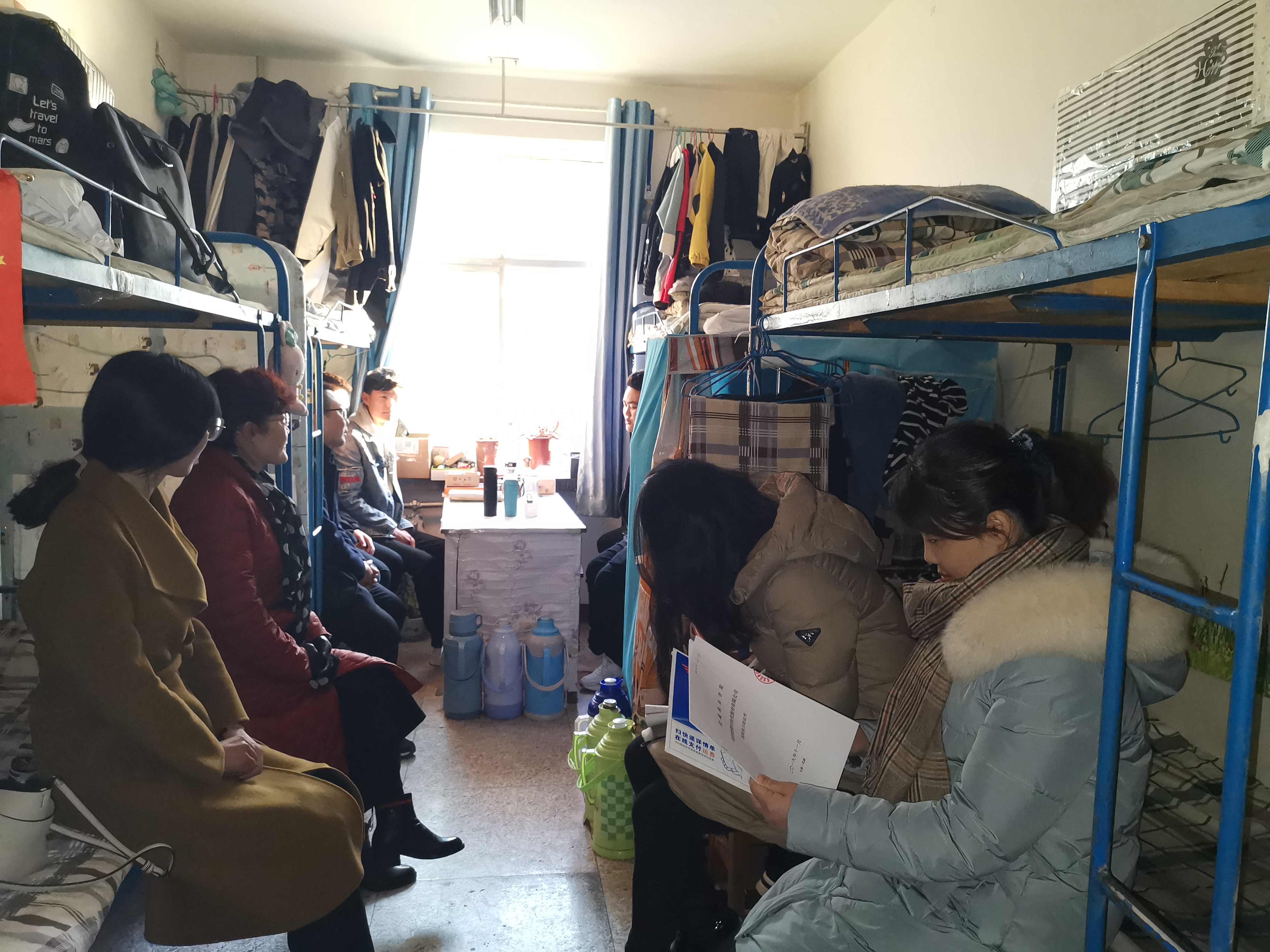 黨員在女生宿舍進行調研