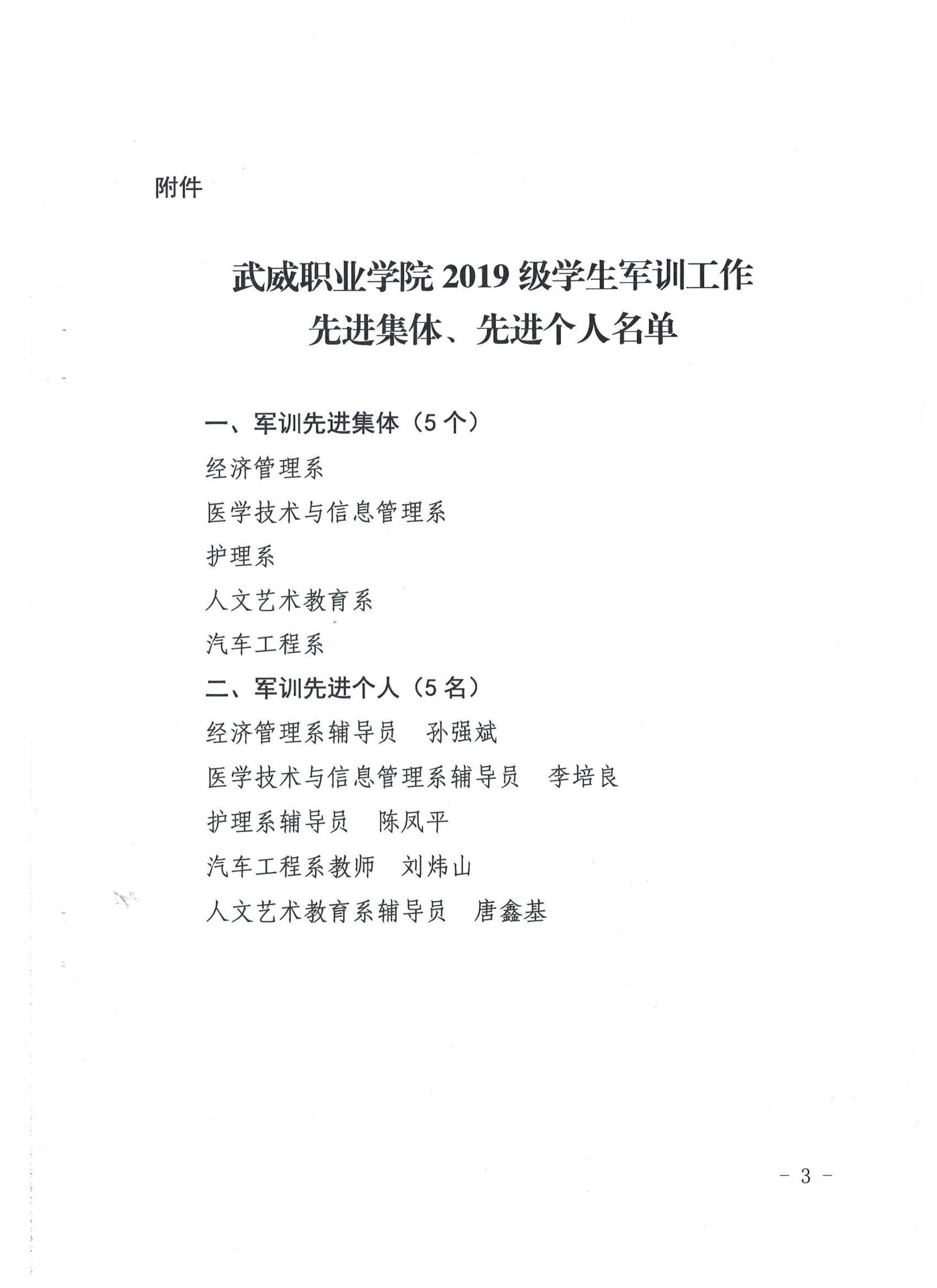 武威職業(yè)學(xué)院關(guān)于表彰2019級學(xué)生軍訓(xùn)工作先進(jìn)集體、先進(jìn)個人的決定