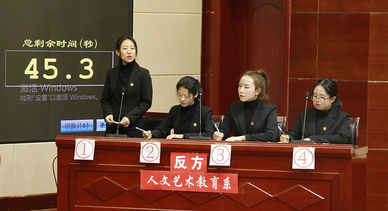 經(jīng)過四輪11場(chǎng)次的比賽,電子信息工程系代表隊(duì)和人文藝術(shù)教育系代表隊(duì)進(jìn)入最后決賽。比賽現(xiàn)場(chǎng),正方電子信息工程系代表隊(duì)和反方人文藝術(shù)教育系代表隊(duì)針對(duì)企業(yè)用人以“才”還是以“德”為先拉開激烈交戰(zhàn)。雙方選手在立論、駁立論、攻辯等各個(gè)環(huán)節(jié)中思路清晰,引經(jīng)據(jù)典,字字珠璣,使現(xiàn)場(chǎng)氣氛迅速升溫。在自由辯論環(huán)節(jié)中,雙方選手就辯題展開更深層次的辯論,個(gè)個(gè)妙語連珠、你來我往、侃侃而談,場(chǎng)下掌聲連連。整場(chǎng)比賽高潮迭起,精彩不斷,觀眾也積極參與互動(dòng),現(xiàn)場(chǎng)氣氛十分活躍。經(jīng)過激烈的角逐,人文藝術(shù)教育系代表隊(duì)表現(xiàn)更勝一籌,獲得本屆辯論賽冠軍,電子信息工程系榮獲本屆比賽亞軍,醫(yī)學(xué)技術(shù)與信息管理系榮獲季軍,能源工程系榮獲 “優(yōu)秀辯隊(duì)”,人文藝術(shù)教育系楊婉瑩、電子信息工程系楊曉紅和能源工程系萬寶紅3位同學(xué)榮獲 “最佳辯手”。