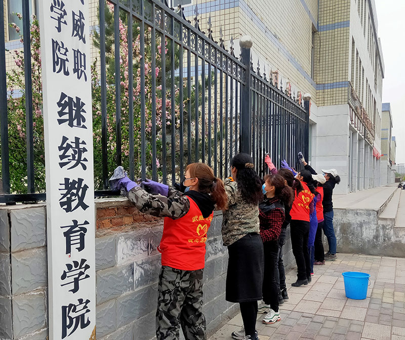 為扎實開展“三整治”“三提升”行動,有效改善城區(qū)環(huán)境,進一步提升校園品質,建設文明校園,助力全國文明城市創(chuàng)建,為師生返校創(chuàng)造干凈、整潔、衛(wèi)生的學習工作和生活環(huán)境。按照涼州區(qū)城市管理委員會通知,結合學院實際,4月15日起,學院后勤處經(jīng)過排查,組織教職工及保潔工作人員全面開展校園“清潔亮妝”行動。
