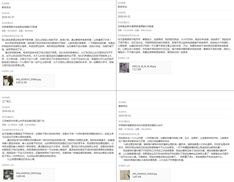 結(jié)合同學(xué)們生活和學(xué)習(xí)實際,學(xué)工處要求廣大同學(xué)積極參與志愿服務(wù)、春耕勞動、工廠務(wù)工、家務(wù)勞動等方面勞動實踐,完成每周不少于2小時的實踐鍛煉,并通過信息化平臺上報活動照片和勞動心得。