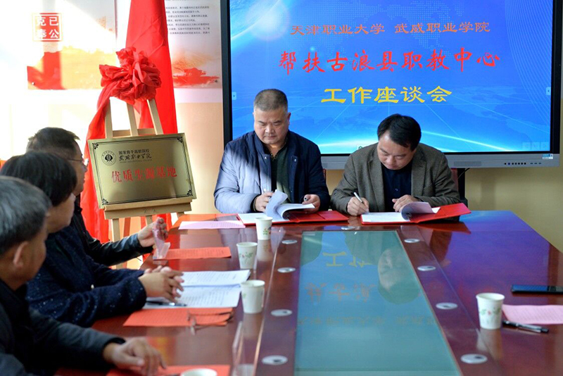 對(duì)接會(huì)上,趙明為古浪職教中心頒授“優(yōu)質(zhì)生源基地”牌匾,簡(jiǎn)要介紹了學(xué)院近年來(lái)取得的重要辦學(xué)成果。他表示,學(xué)院今年顯著加強(qiáng)了同古浪職教中心的合作力度,今后還要擴(kuò)大合作培養(yǎng)專(zhuān)業(yè),全方位深化合作關(guān)系,共同培養(yǎng)職業(yè)技能人才。他強(qiáng)調(diào),通過(guò)兩校的合作辦學(xué),我們要取長(zhǎng)補(bǔ)短,促進(jìn)中高職貫通培養(yǎng)大力發(fā)展。會(huì)上,王守云同古浪職教中心校領(lǐng)導(dǎo)簽署了“2020年中高職貫通培養(yǎng)辦學(xué)合作協(xié)議”。