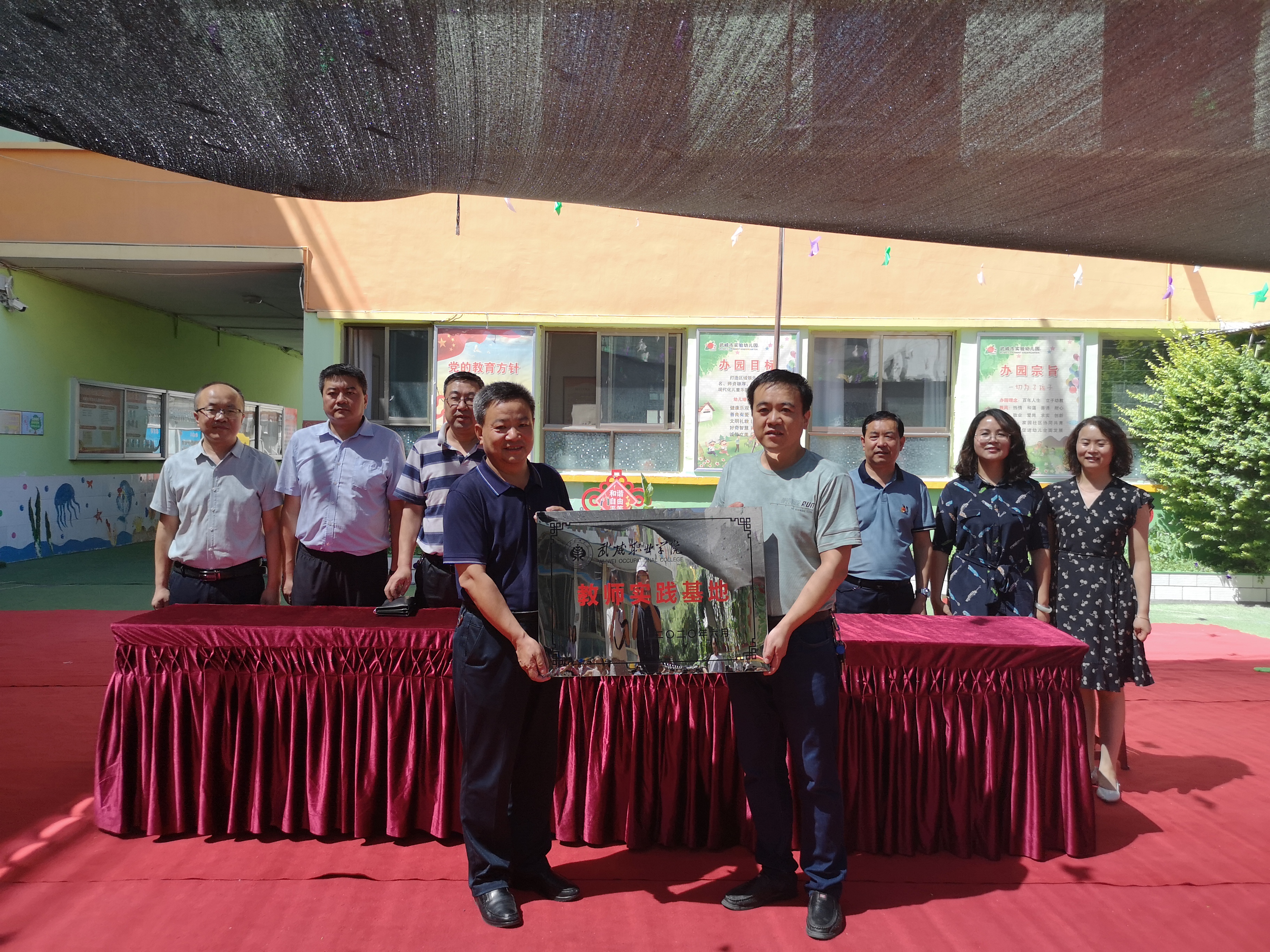 為了加強學(xué)前教育骨干專業(yè)建設(shè),提升學(xué)前教育師資隊伍素質(zhì),使教學(xué)與幼兒園實踐緊密結(jié)合,實現(xiàn)優(yōu)勢互補共同發(fā)展,7月22日下午,武威職業(yè)學(xué)院分別在武威市實驗幼兒園、涼州區(qū)和平愛彌兒幼兒園進行教師實踐基地揭牌儀式。