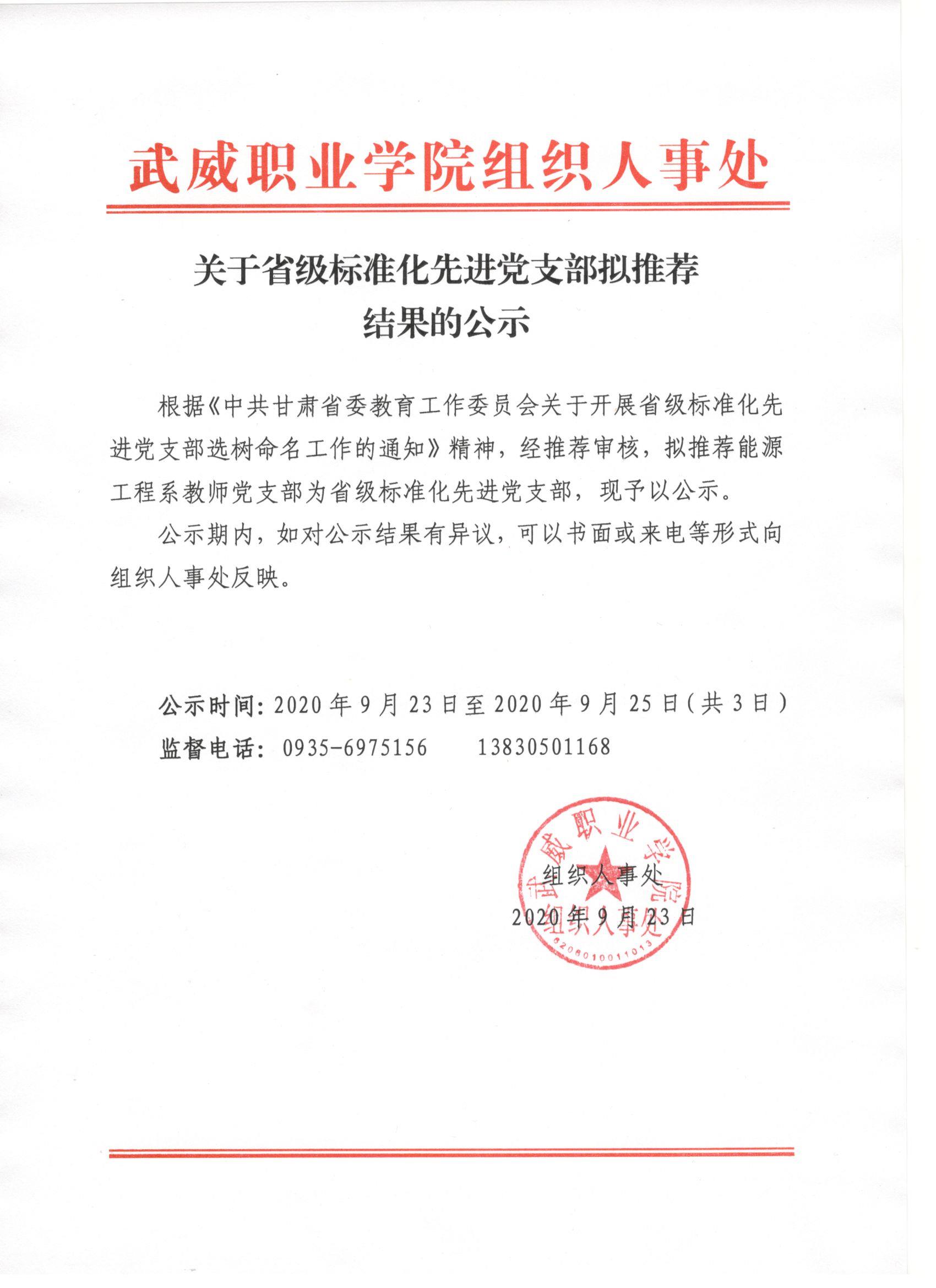 關(guān)于省級(jí)標(biāo)準(zhǔn)化先進(jìn)黨支部擬推薦結(jié)果的公示