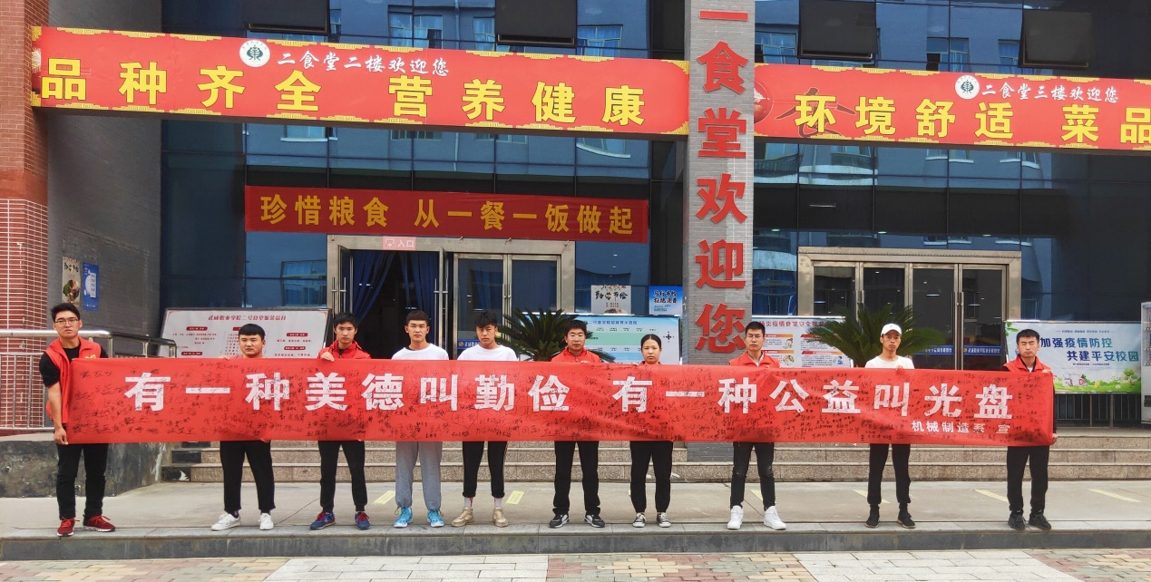 為了大力加強(qiáng)廣大師生節(jié)約糧食和光盤行動(dòng)的意識(shí),培養(yǎng)健康文明的就餐習(xí)慣。2020年9月16日武威職業(yè)學(xué)院機(jī)械制造系在學(xué)校食堂門口舉行了以“節(jié)約糧食?儉以養(yǎng)德”為主題的簽名活動(dòng)。