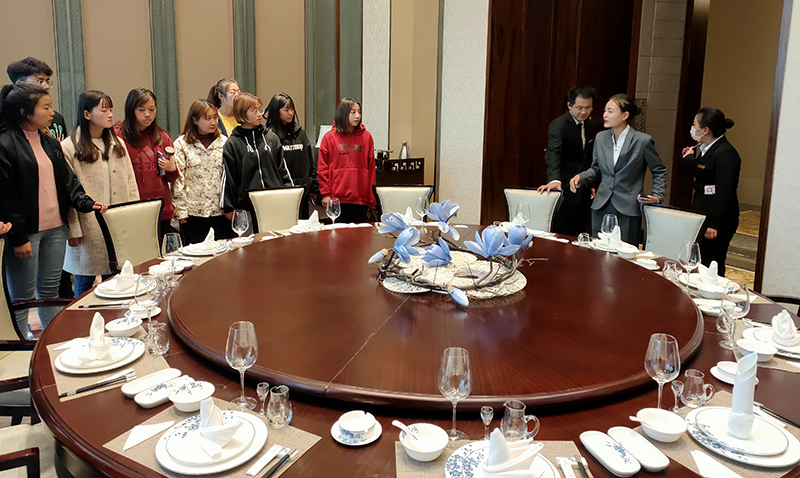 最后,姚盈老師對(duì)藍(lán)海御華大飯店提供的參觀機(jī)會(huì)和熱心招待表示感謝,并對(duì)此次參觀學(xué)習(xí)做了總結(jié);他表明作為學(xué)姐,羅列列能夠晉升為總監(jiān),這種成功正是得益于她堅(jiān)持不懈的精神、扎實(shí)的專業(yè)理論以及高超的專業(yè)技能,并由此告訴同學(xué)們要敢于走進(jìn)企業(yè),將所學(xué)課程運(yùn)用到實(shí)踐當(dāng)中,在學(xué)生時(shí)代就要培養(yǎng)自己堅(jiān)強(qiáng)的毅力以及非凡的能力,只有這樣,才能在工作中以不變應(yīng)萬變,成長為能夠服務(wù)社會(huì)的優(yōu)秀青年!