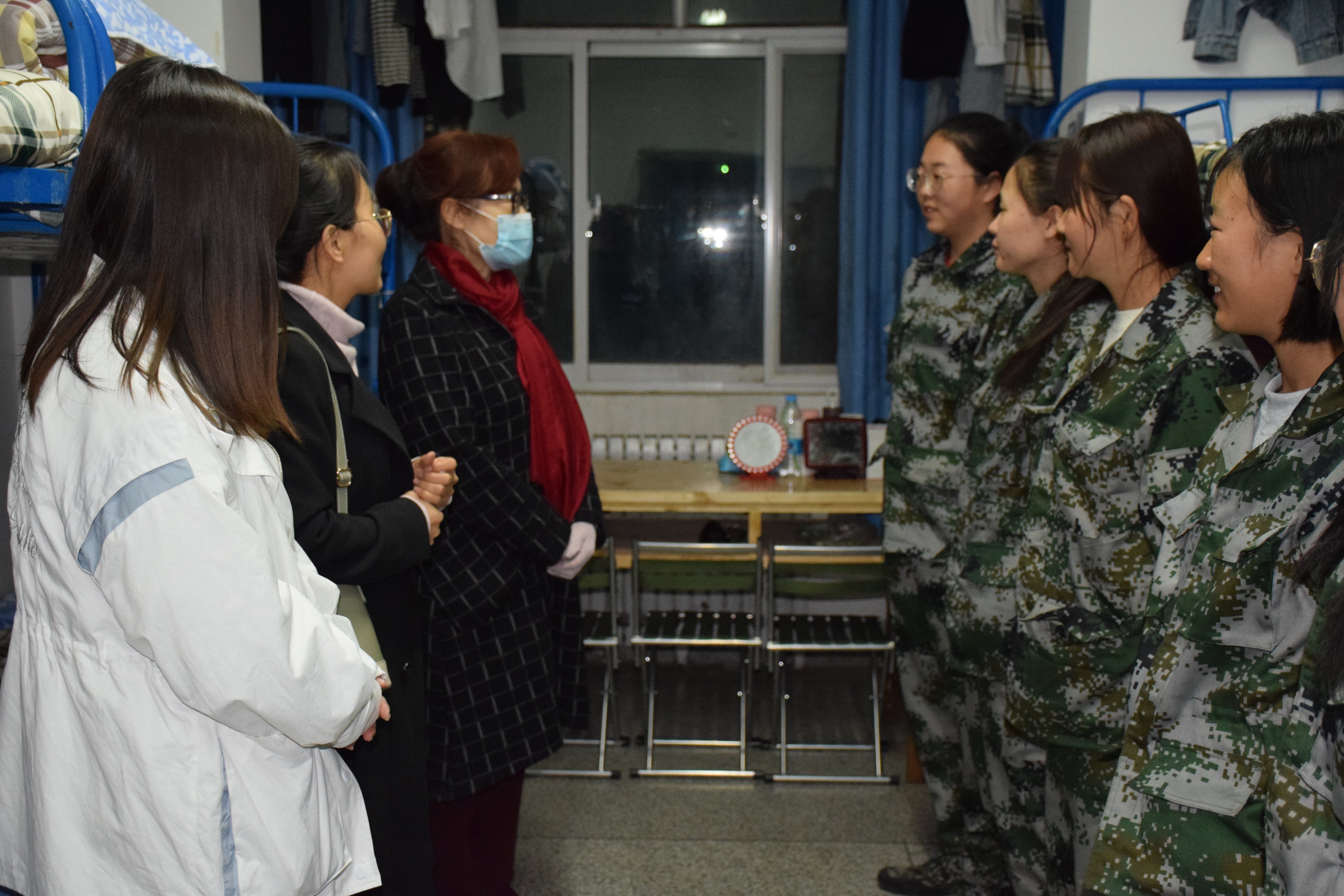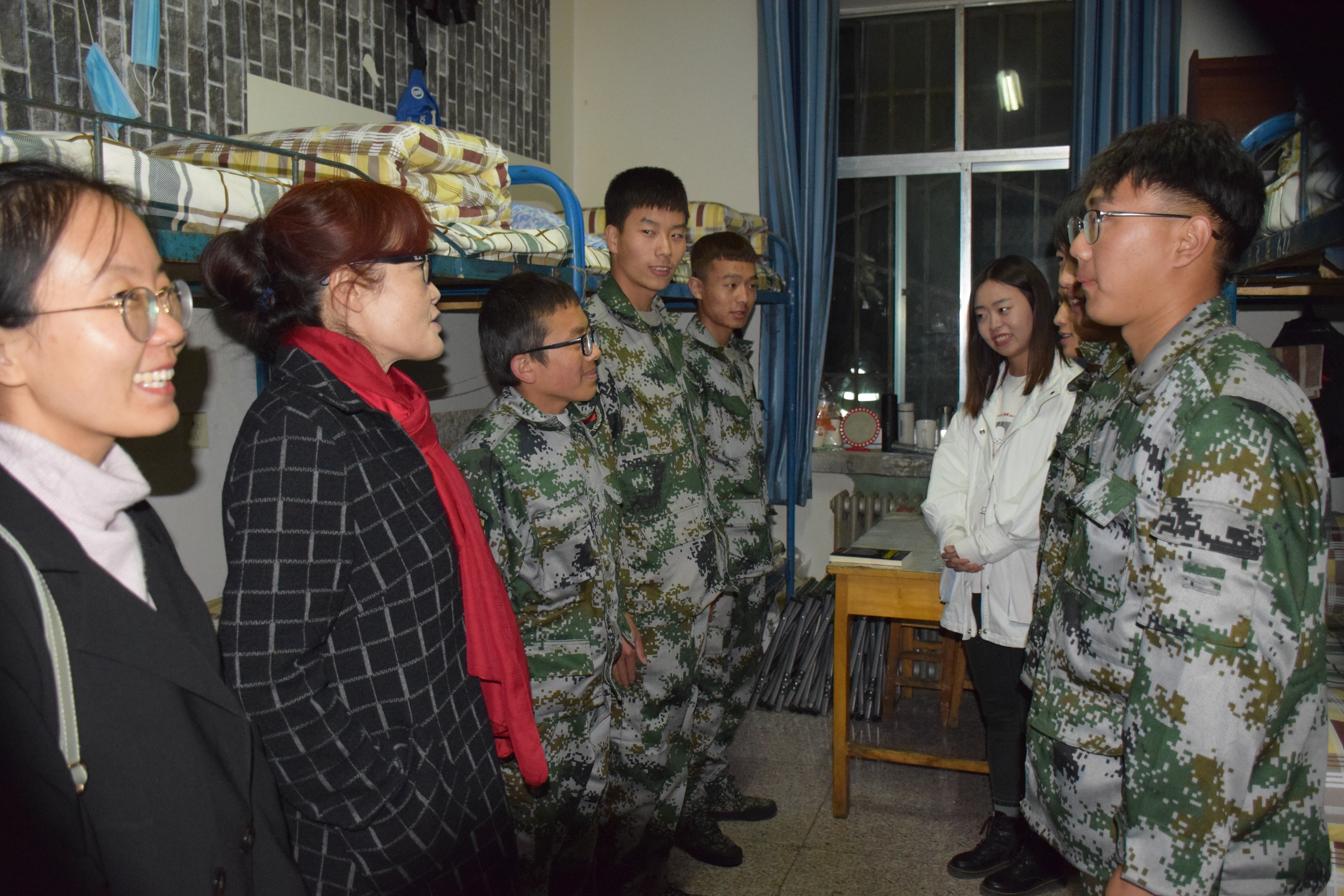 ????? 10月14日晚,現(xiàn)代農(nóng)業(yè)技術(shù)系全體新生班主任在系黨總支書記晏素珍同志的帶領(lǐng)下,深入新生宿舍走訪慰問新生。