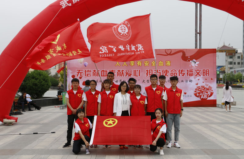 6月14日,是第十六個世界獻(xiàn)血日,學(xué)院團(tuán)委組織15名無償獻(xiàn)血志愿者參加武威市 “無償獻(xiàn)血奉獻(xiàn)愛心,擔(dān)當(dāng)使命傳播文明”大型宣傳、義診、獻(xiàn)血活動。