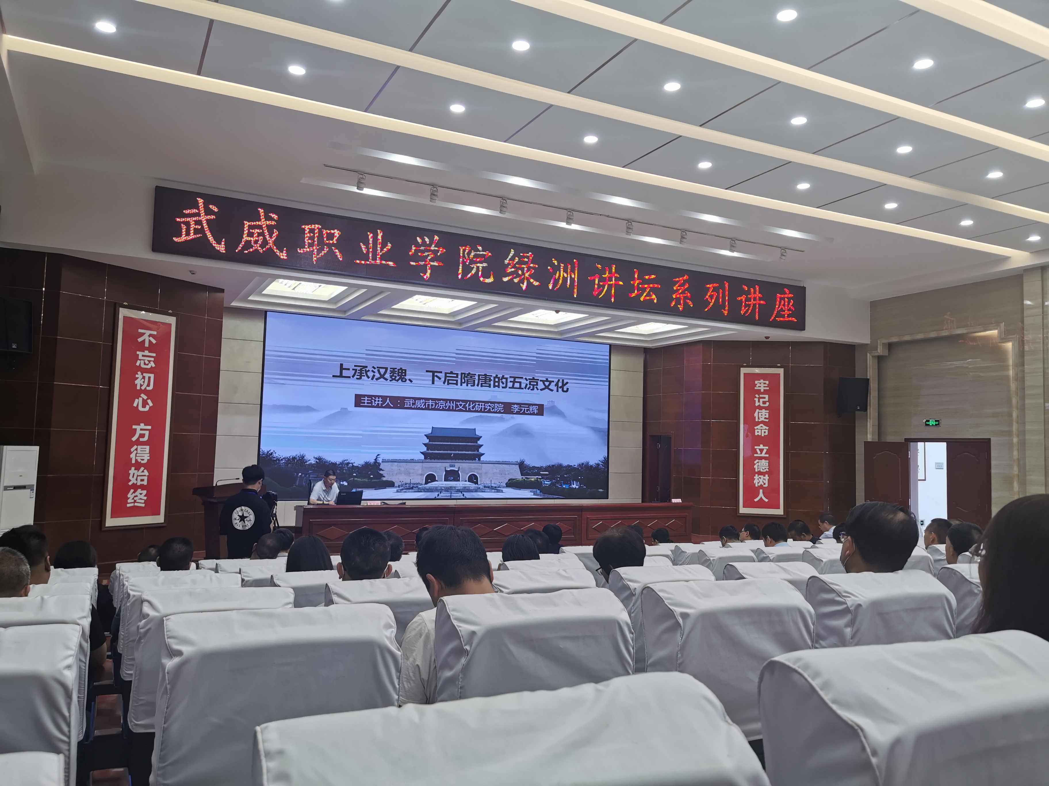 李元輝研究員圍繞“走進武威,觸摸五涼;五涼興亡,百年滄桑;承前啟后,繼絕扶衰;文脈綿延,繼往開來”等方面講述了涼州文化的獨特稟賦、鮮明特征和豐富內(nèi)涵,以及對中國歷史文化的深遠影響、對中原傳統(tǒng)文化的繼承和創(chuàng)新,為學院師生分享了一場期待已久的文化盛宴和精神大餐。