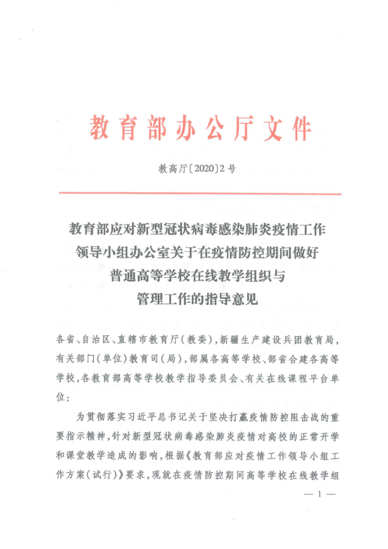 教育部做好普通高等學(xué)校在線教學(xué)組織與管理工作的指導(dǎo)意見