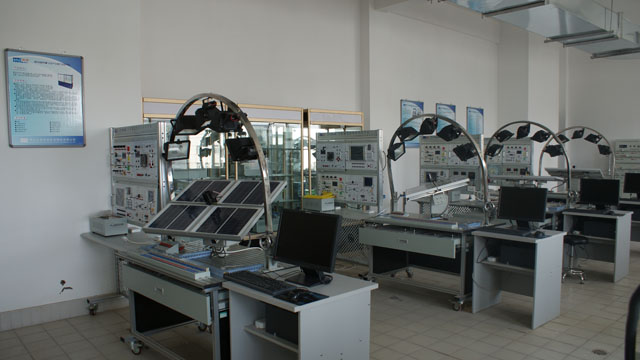 光伏光熱實(shí)訓(xùn)室建立于2013年4月初,主要面向光伏發(fā)電及應(yīng)用技術(shù)、太陽能光熱技術(shù)專業(yè),是能源工程系的專業(yè)實(shí)訓(xùn)室之一。室內(nèi)配有光伏產(chǎn)業(yè)鏈陳列柜、太陽能輻射觀測系統(tǒng)、太陽能氣象觀測系統(tǒng)各1套,太陽能熱水器實(shí)訓(xùn)裝置2套,太陽能光伏發(fā)電系統(tǒng)應(yīng)用平臺(tái)4套,太陽能光伏發(fā)電系統(tǒng)實(shí)訓(xùn)裝置8套。該實(shí)訓(xùn)室主要服務(wù)于我系《光伏發(fā)電技術(shù)分析與應(yīng)用》、《太陽能資源利用與開發(fā)》、《光伏發(fā)電系統(tǒng)集成與施工》等專業(yè)核心課程。