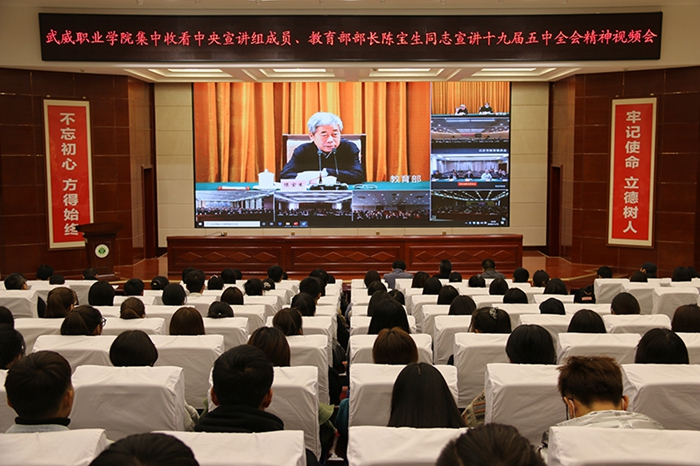 武威職業(yè)學院組織黨員干部和師生觀看教育部黨組書記、部長陳寶生宣講十九屆五中全會精神