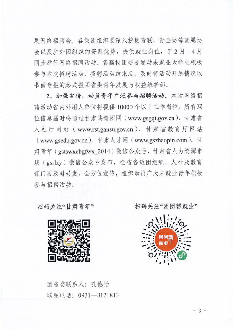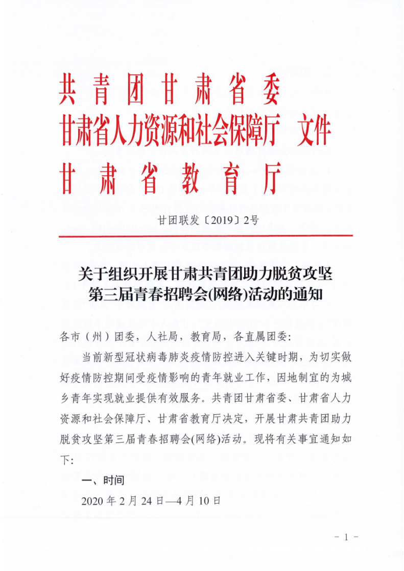 關(guān)于組織開展甘肅共青團(tuán)助力脫貧攻堅(jiān)第三屆青春招聘會(huì)(網(wǎng)絡(luò))活動(dòng)的通知