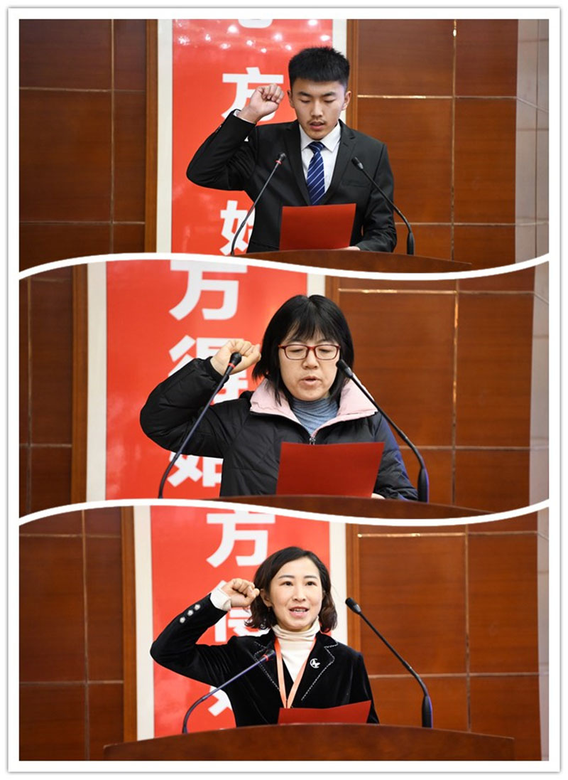 參賽學生代表吳德磊同學,參賽教師代表張玉梅,裁判員代表趙曉麗分別在開幕式上宣誓,要遵守比賽規(guī)則,嚴格標準、公正評分,確保比賽安全順利進行。